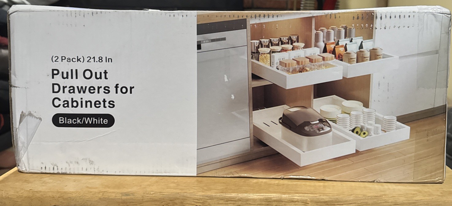 2 Pack Pull Out Cabinet Organizer, 21.8 Deep Slide Out Drawer for Cabinets Adhe
