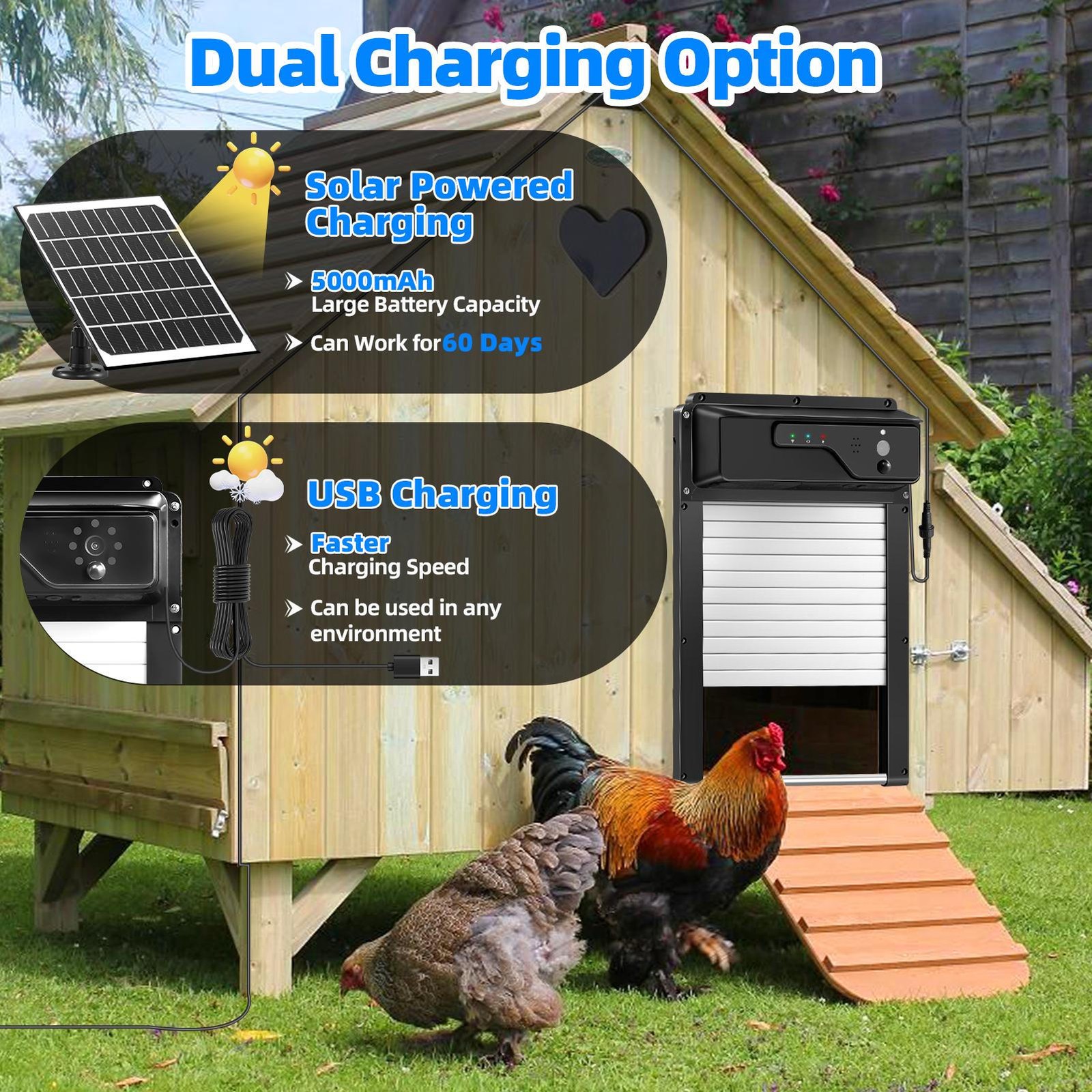Solar Powered Automatic Chicken Coop Door with Timer/PIR Sensor Modes
