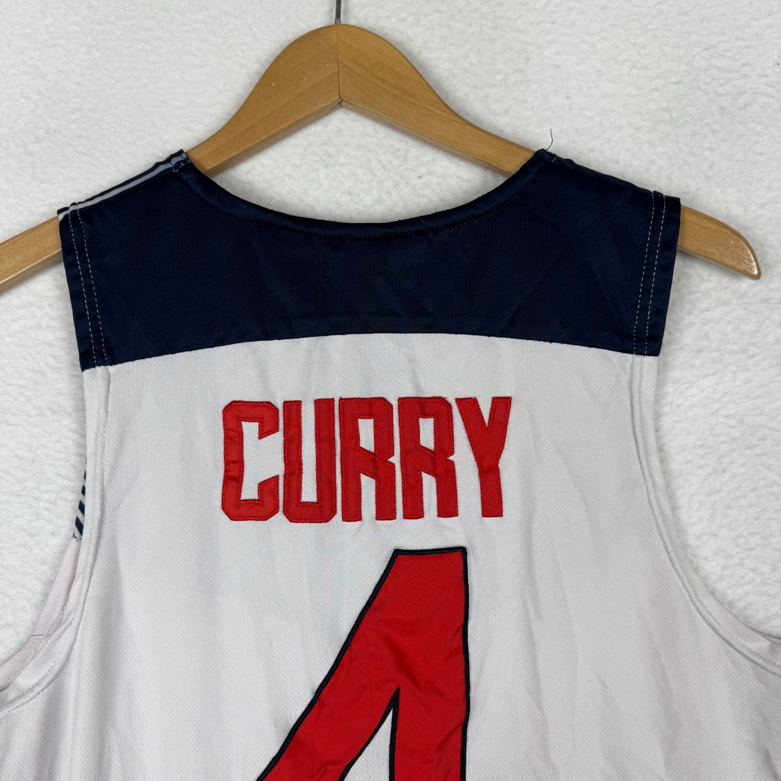 как выглядит Nike Team Medium Rare World Cup USA Basketball Steph Curry 4 Jersey Flaws фото