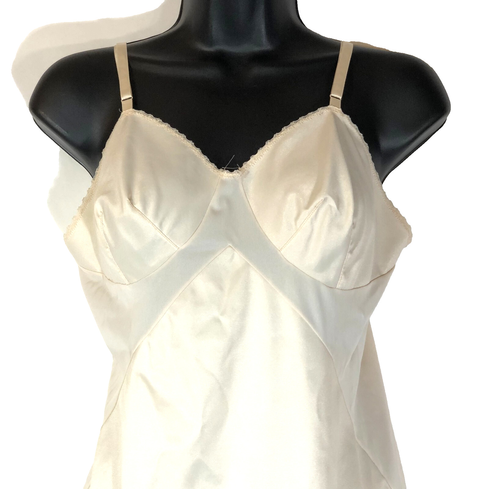 Vanity Fair Full Slip Dress Vintage Ivory Lace Nylon Lingerie Size 34 / S 1950s