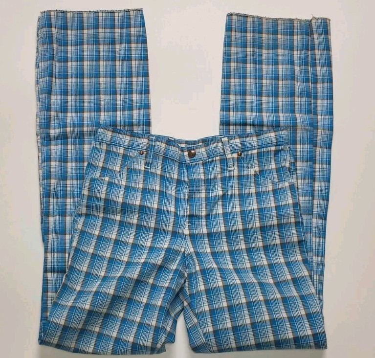 как выглядит Vintage H Bar C Ranchwear Tom Boy Womens Pants Blue Plaid Size 30 X 33.5 фото