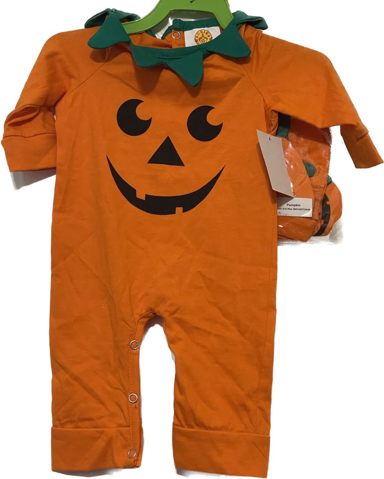 Infant Pumpkin Costume 4 Pc Jumper Hat Booties Baby Halloween 0-6M