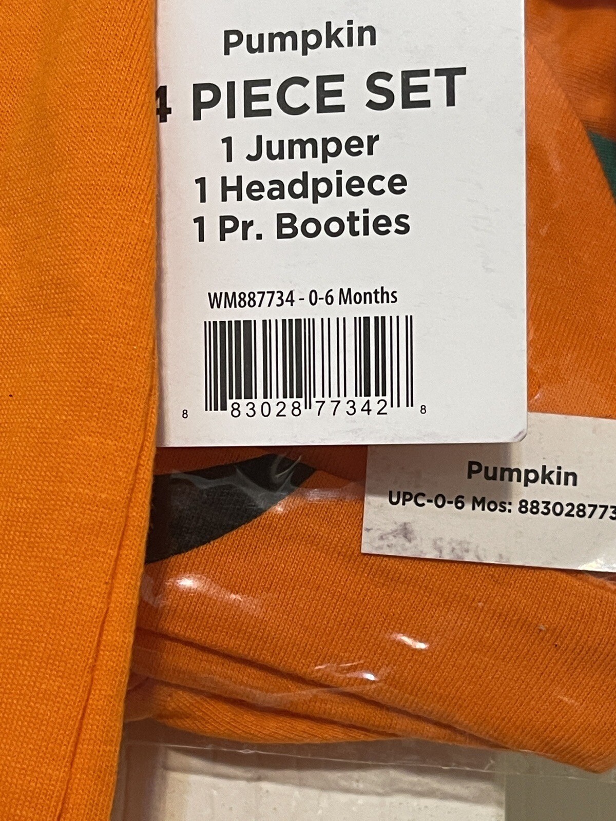 как выглядит Infant Pumpkin Costume 4 Pc Jumper Hat Booties Baby Halloween 0-6M фото