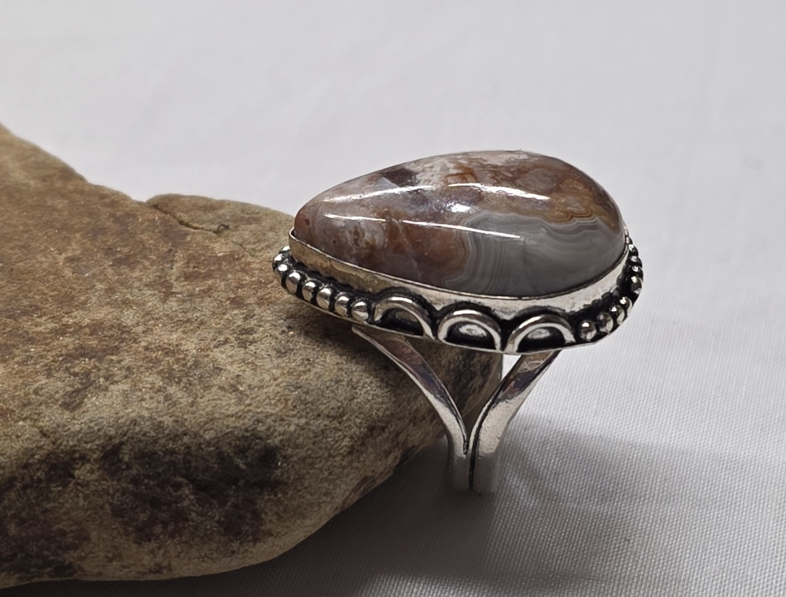 как выглядит CRAZY LACE AGATE 925 SILVER HANDMADE RING SZ 8 FREE SHIP фото