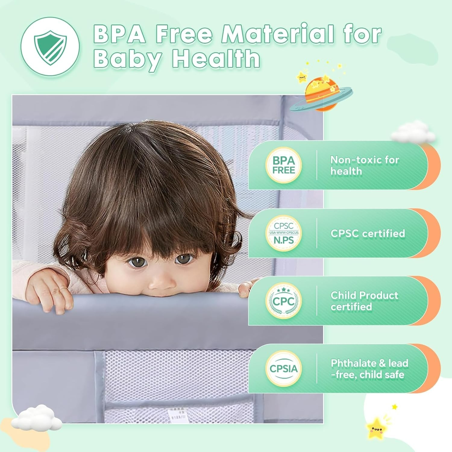 Baby Toddler Playpen with Mat 47 47 Inch BPA-Free Oxford Cloth Breathable Mesh