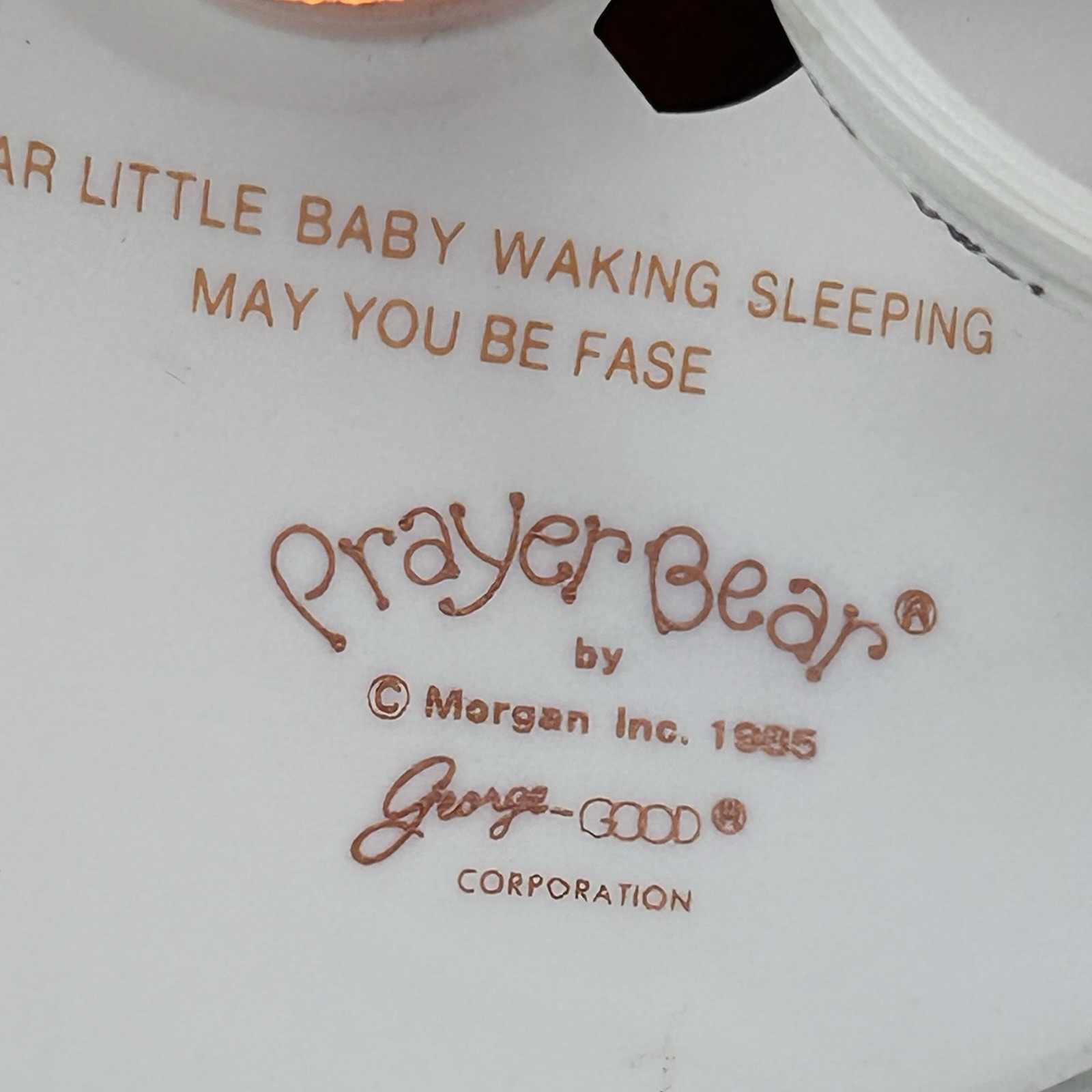 Nursery Lamp Night Light Prayer Bear Ceramic Electric Morgan Inc. George Goode