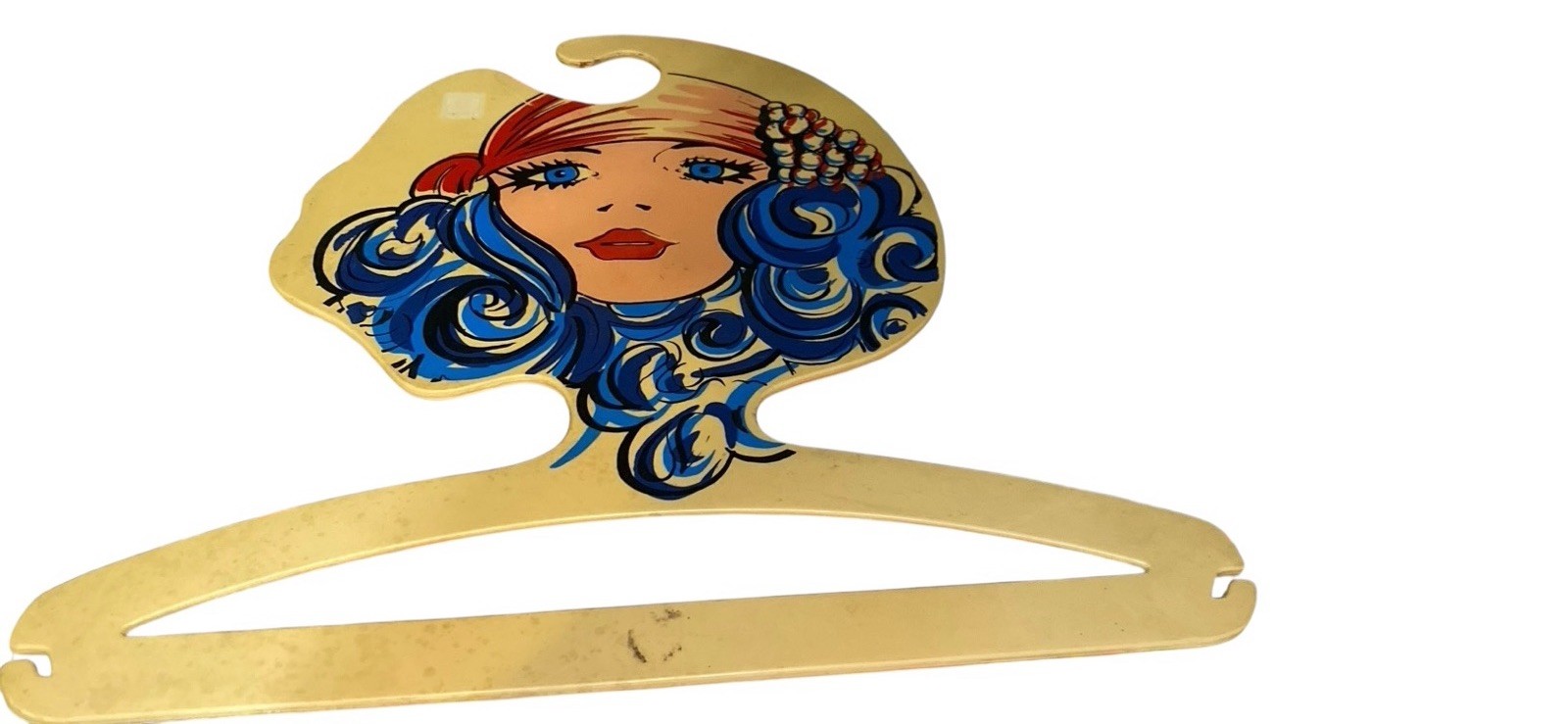 как выглядит Mod Face Hanger Vintage BG Milano Blue Hair Woman Hippie Lady MCM Italy 14.5 x14 фото