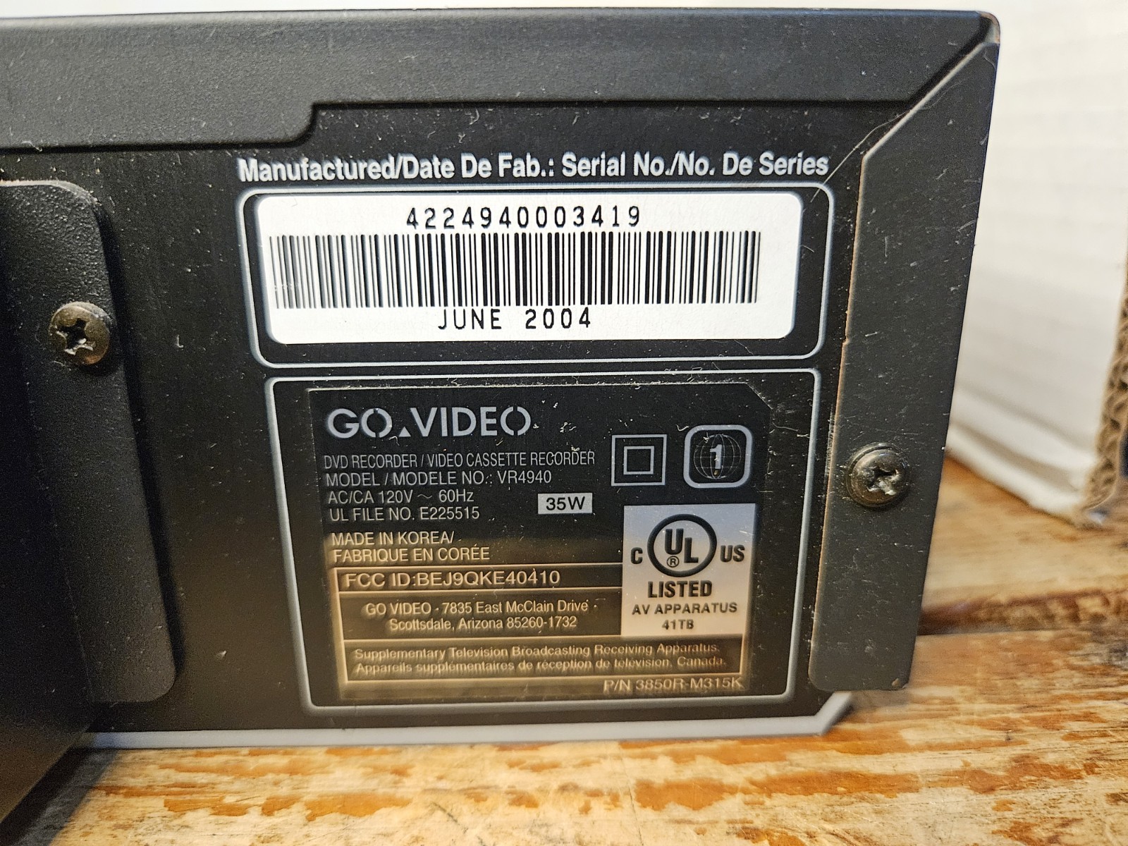 Go Video VR4940 VCR / DVD Recording Player Tested Works