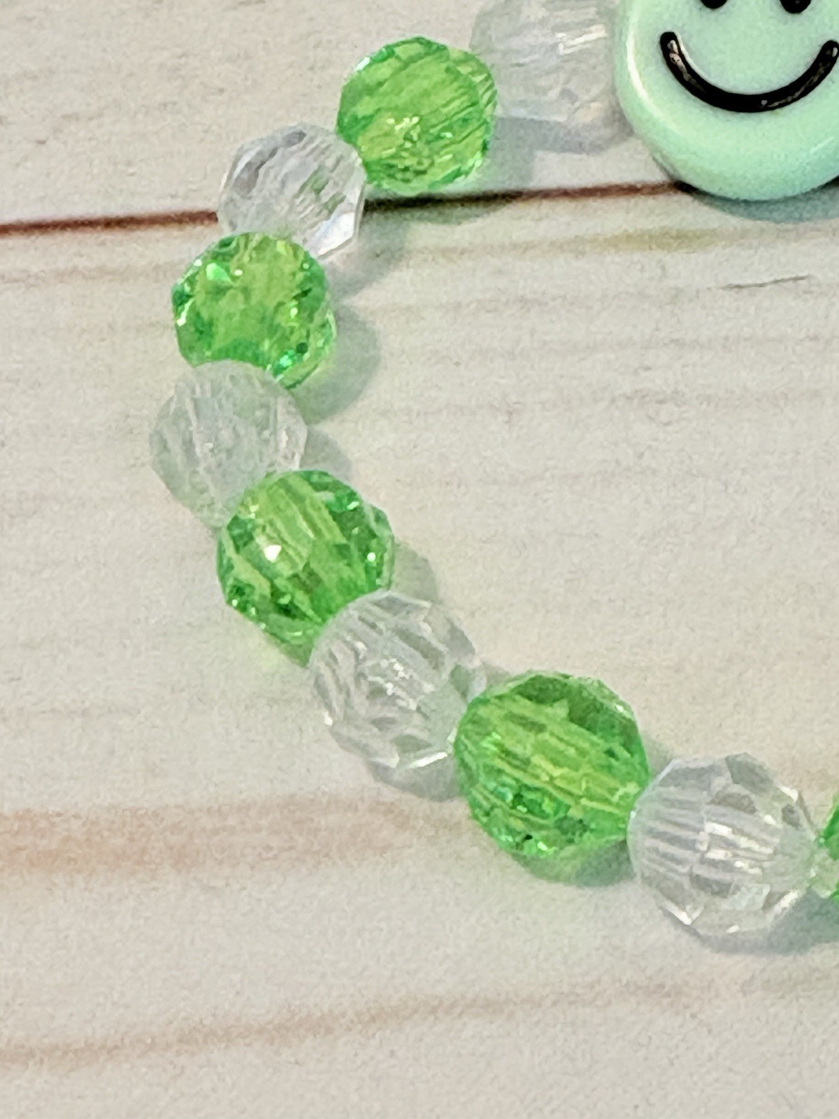 Green Smiley Face Beaded Bracelet For Girls Kids Handmade Jewelry