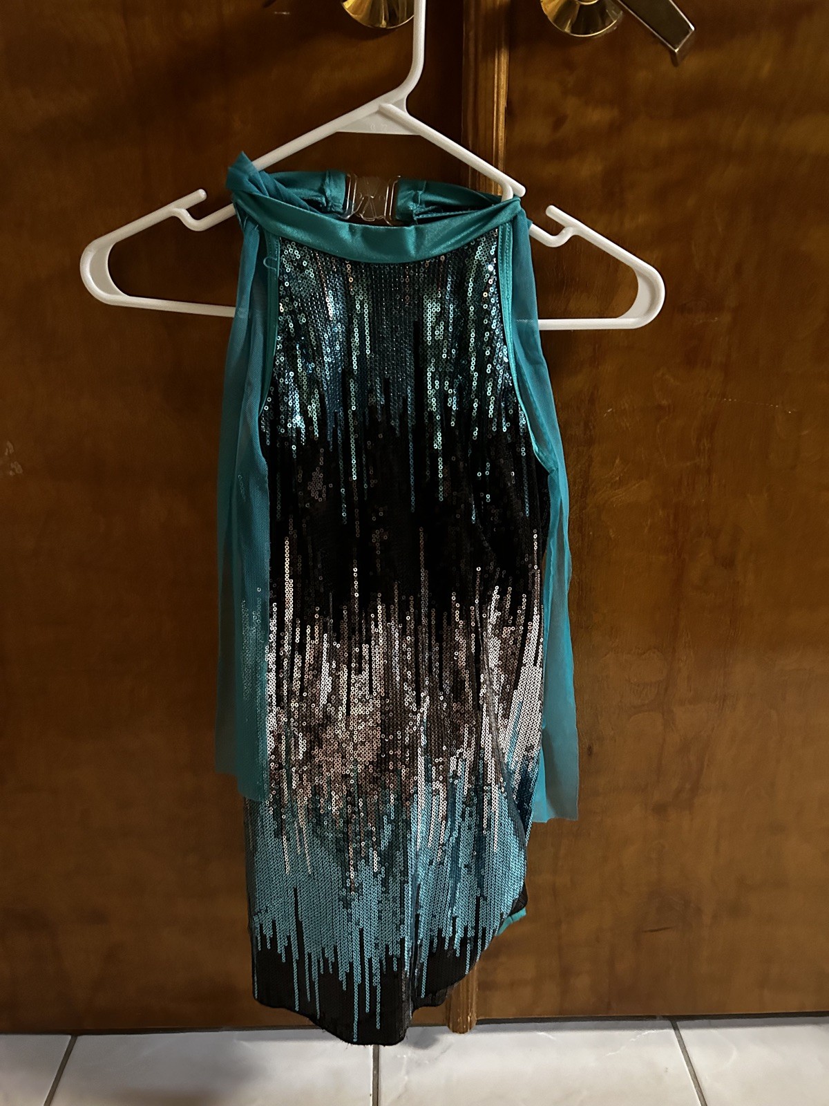 как выглядит Women s Tap Dance / Halloween Costume Sequins Teal Black Silver w/Accessories фото