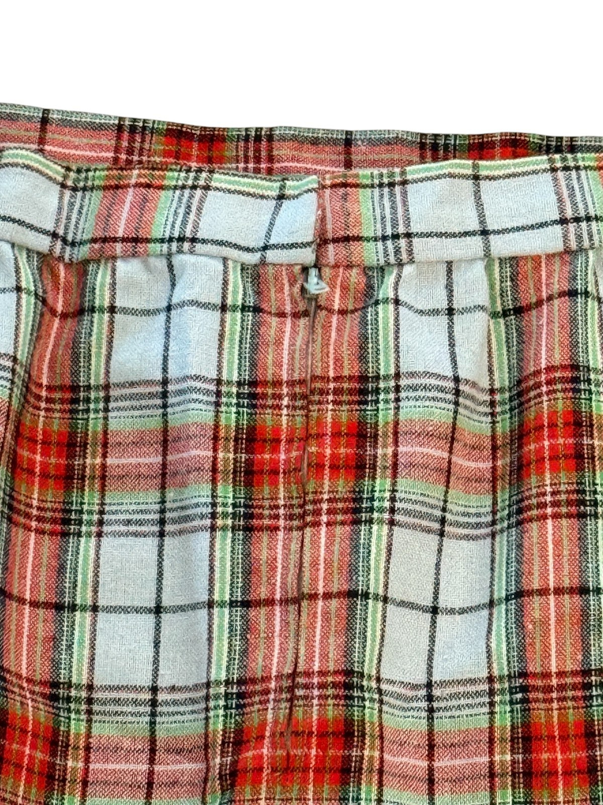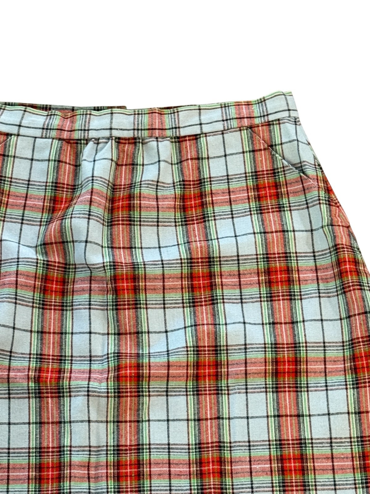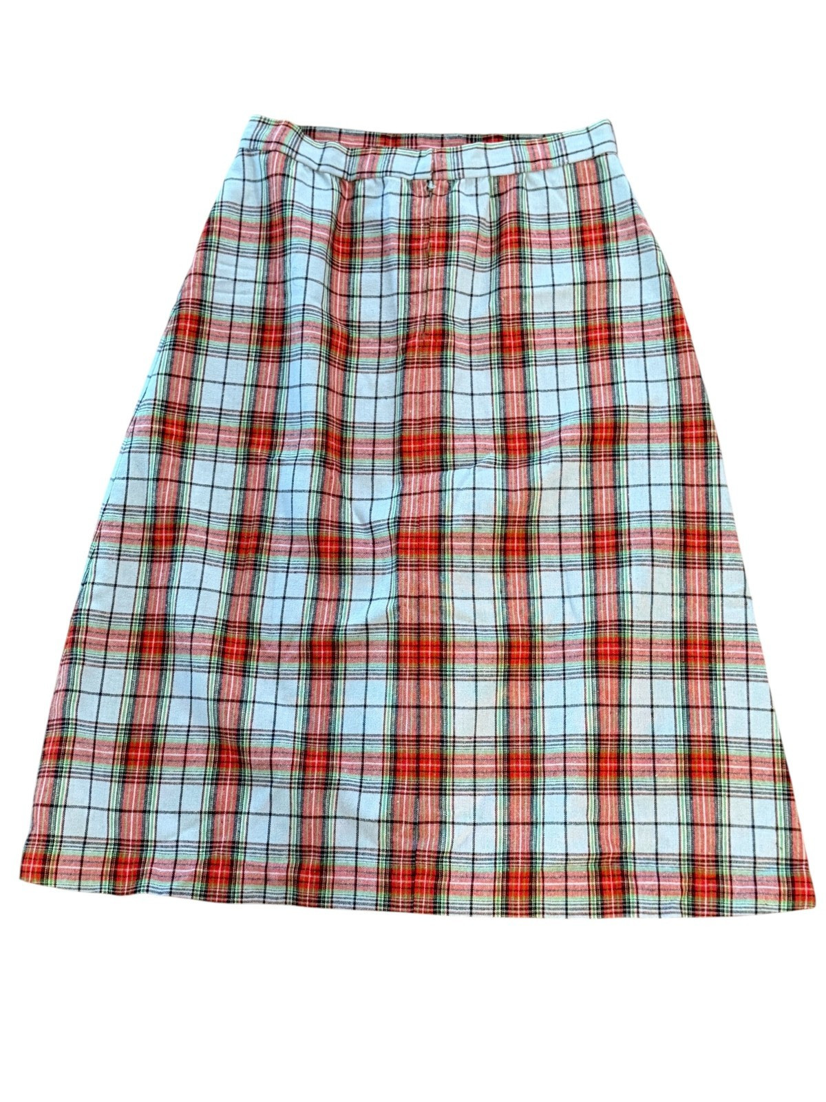 Vintage 1970s Womens Midi Skirt Handmade Blue Red Plaid Wool Preppy Holiday