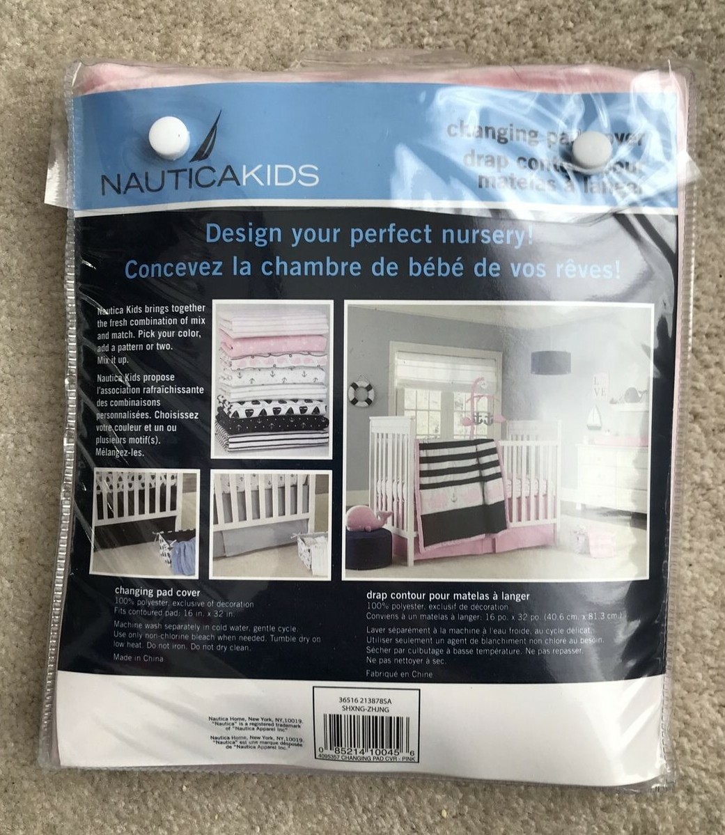 как выглядит Nautica Kids Nursery Changing Pad Cover- Light Pink Navy Whale NEW фото