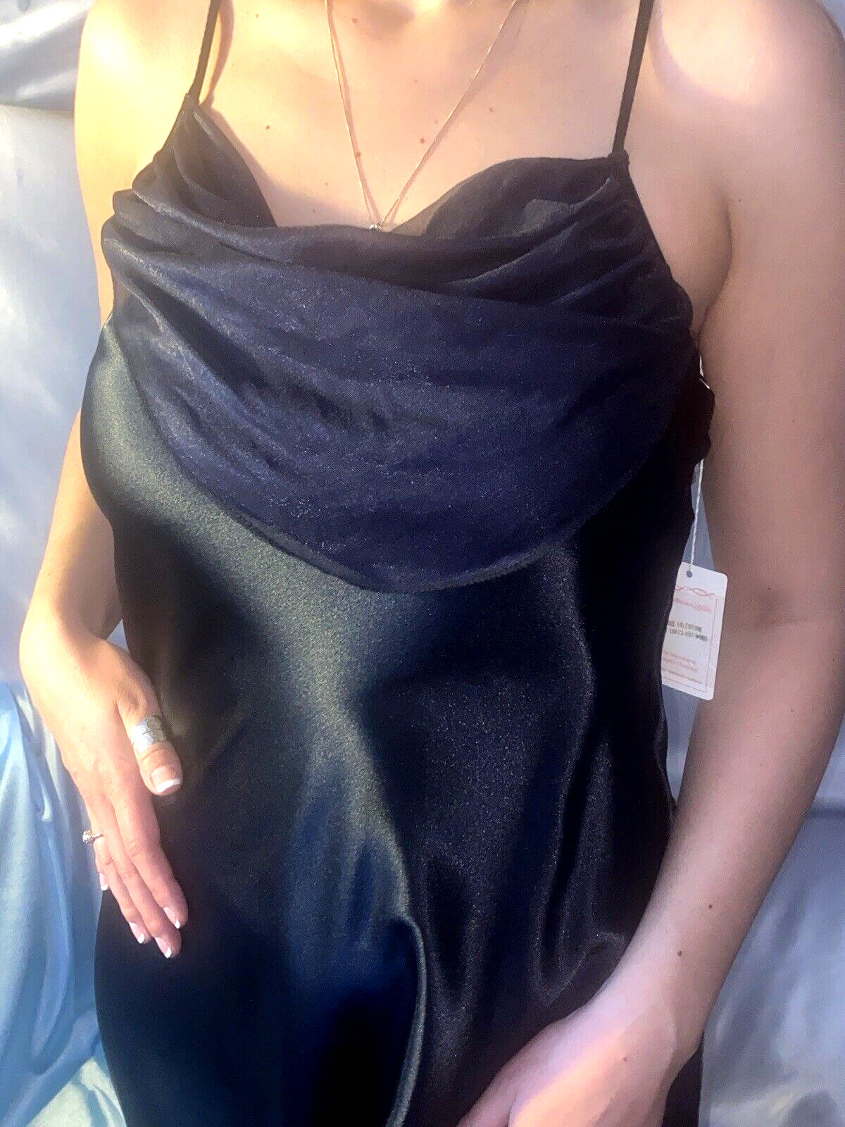 VTG 80S NEGLIGEE BLACK LAME SHEER SATIN COWL RUFFLED GLAM GOWN M: VTG SATIN SHINY LIQUID MOLTEN NIGHTGOWN TIMELESS BLACK DRESS NIGH