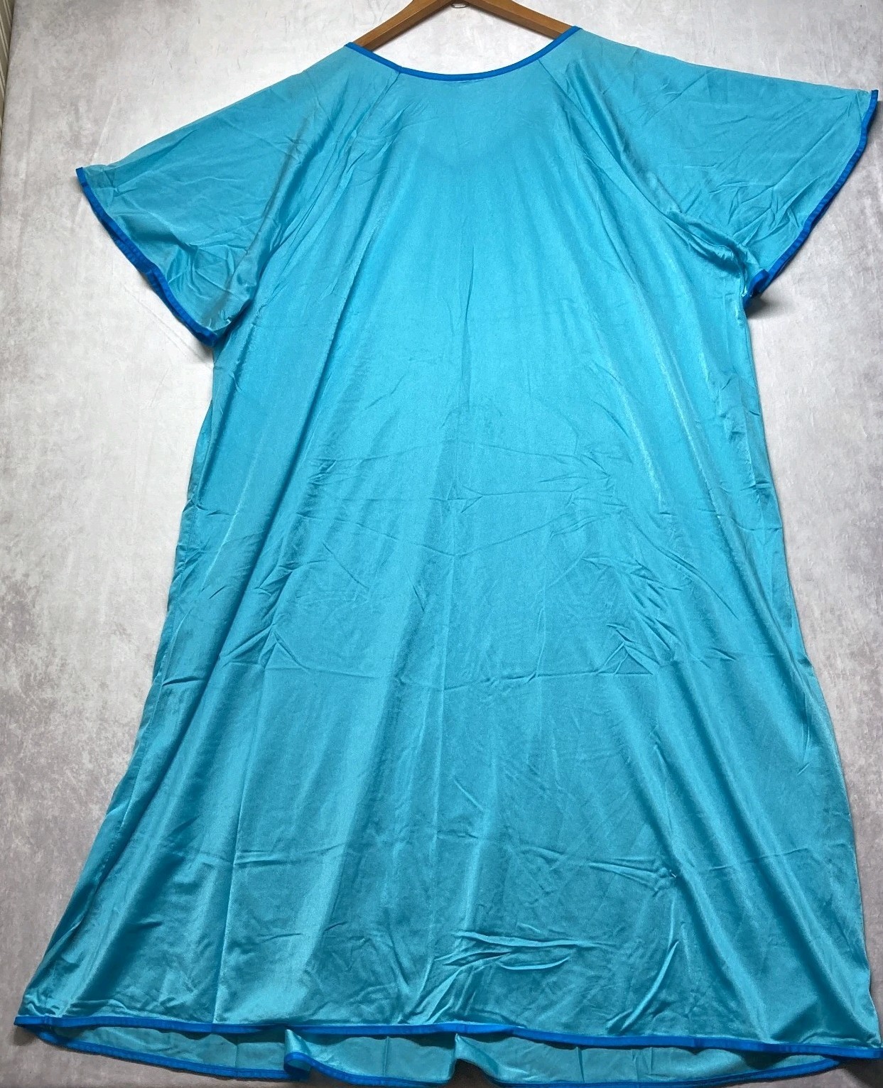 Only Necessities Silky Nightgown 3X Nylon Midi Short Sleeve Teal Blue