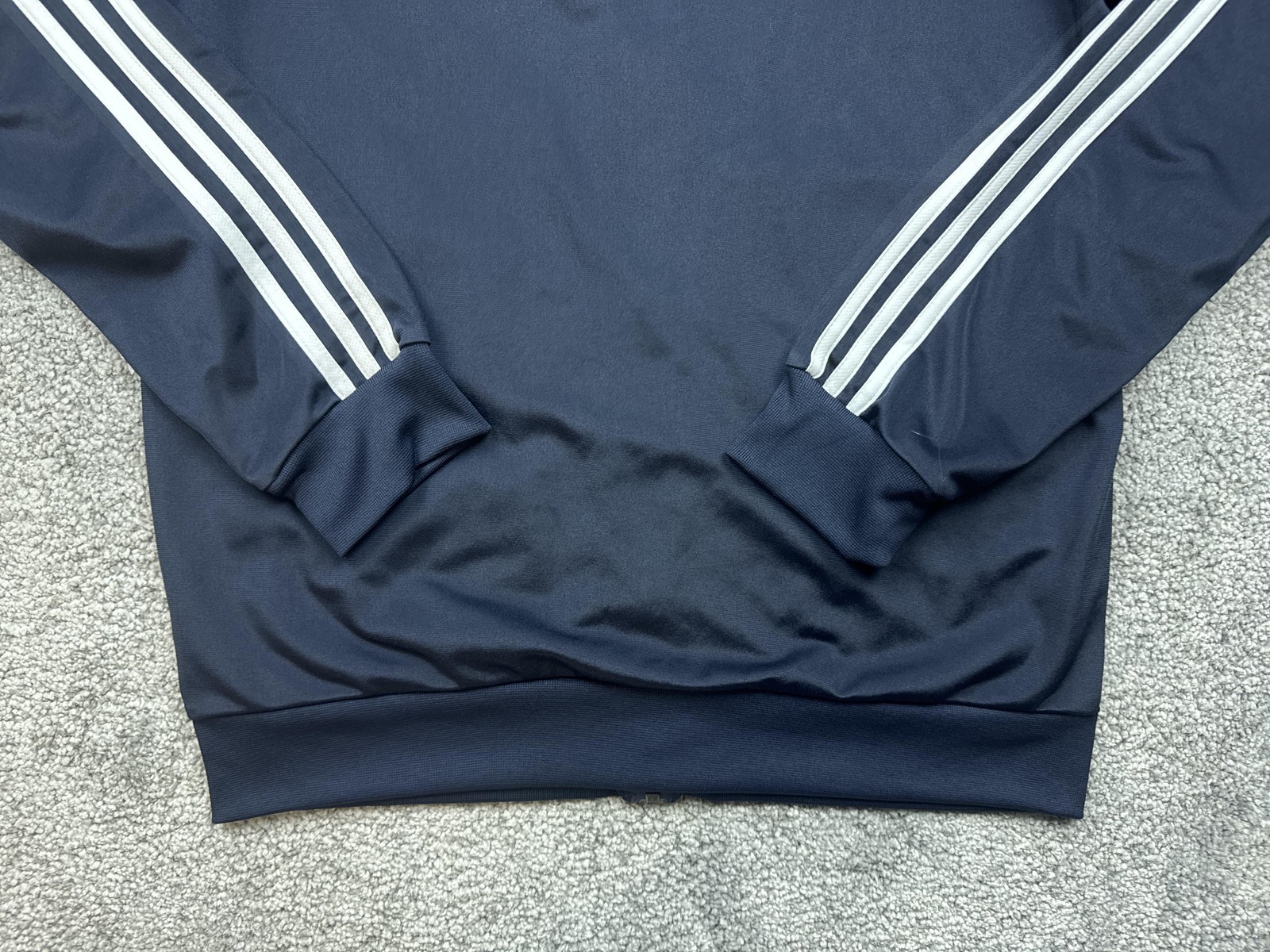 как выглядит Adidas Track Jacket Mens Medium Navy Blue Three Stripe Full Zip Athletic Logo фото