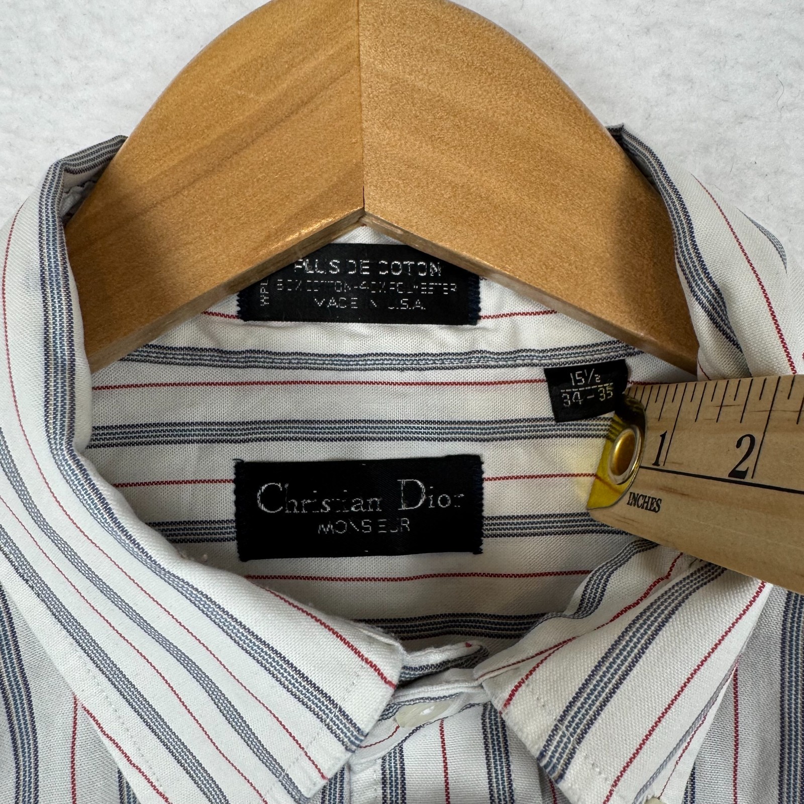 Christian Dior Monseur Mens 15.5 34-35 Long Sleeve Button Down Striped Shirt USA