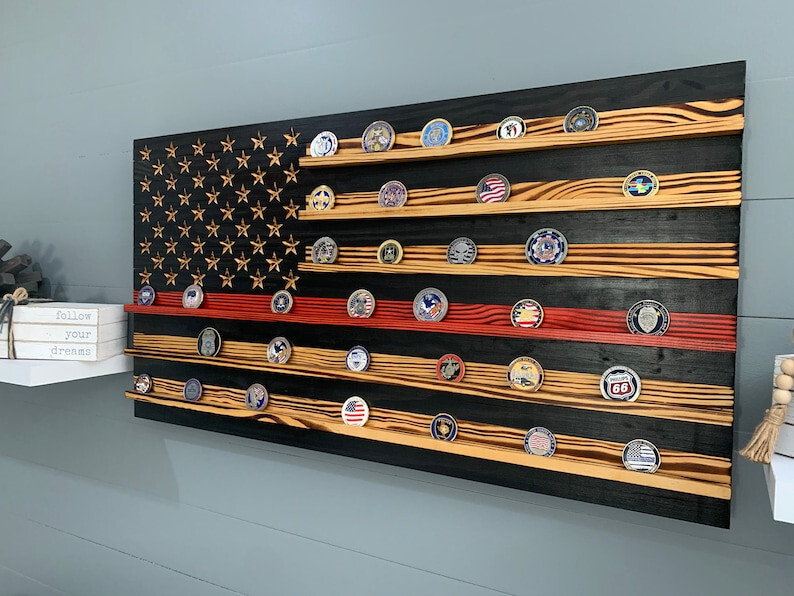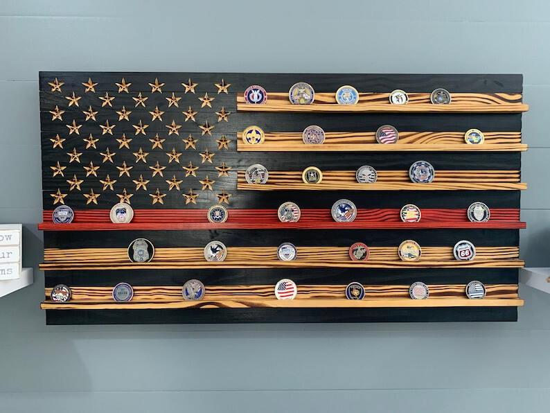 Thin Red Line Challenge Coin Display Rack Holder - Thin Red Line Rustic American