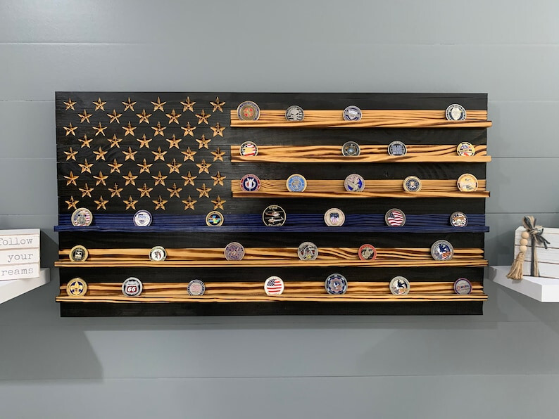Thin Blue Line Challenge Coin Display Rack Holder Thin Blue Line Rustic America