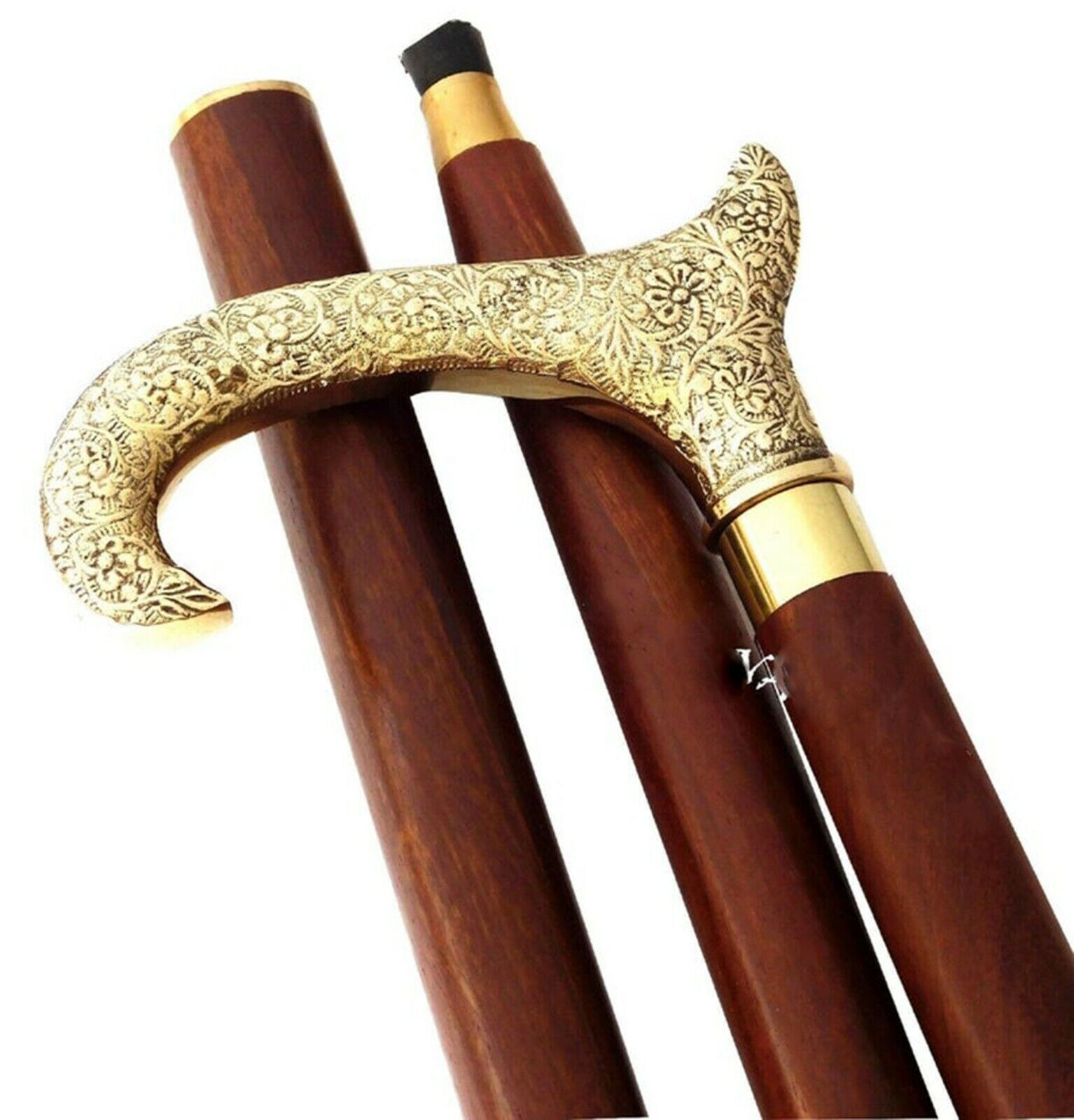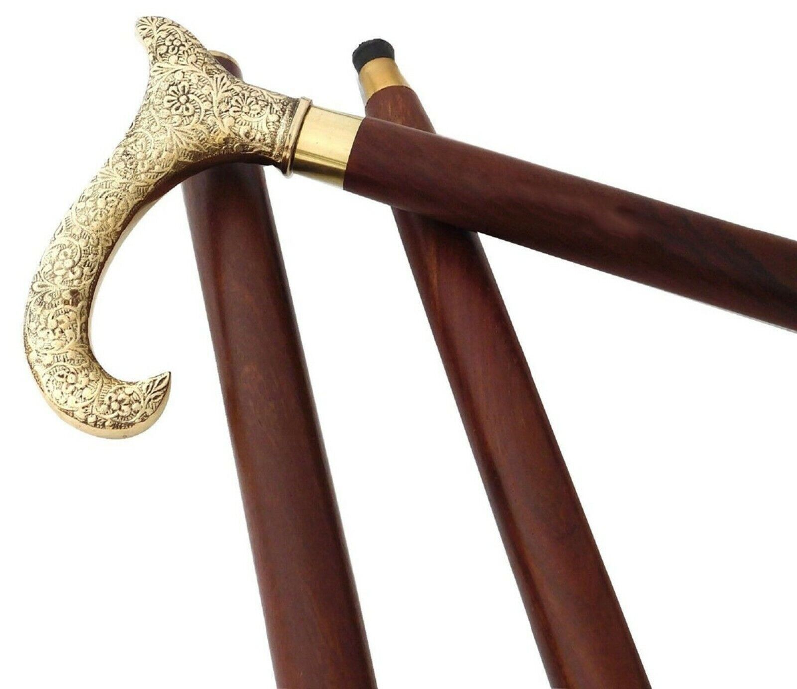 Vintage Beautiful Handmade Brass Wooden Walking Stick Cane X Mass Gift Item new