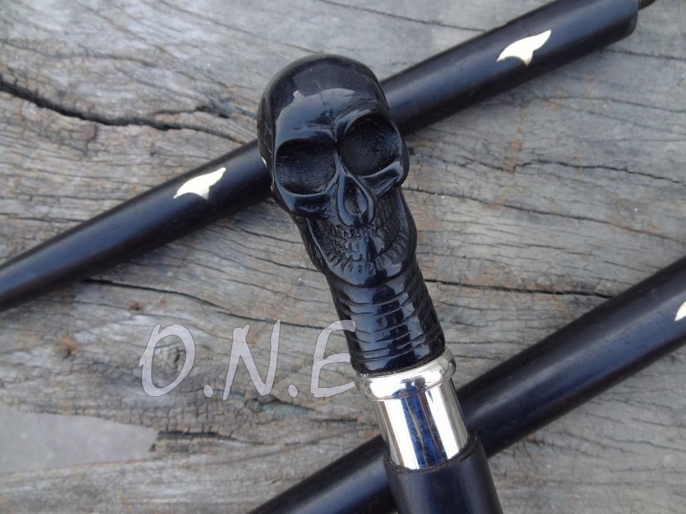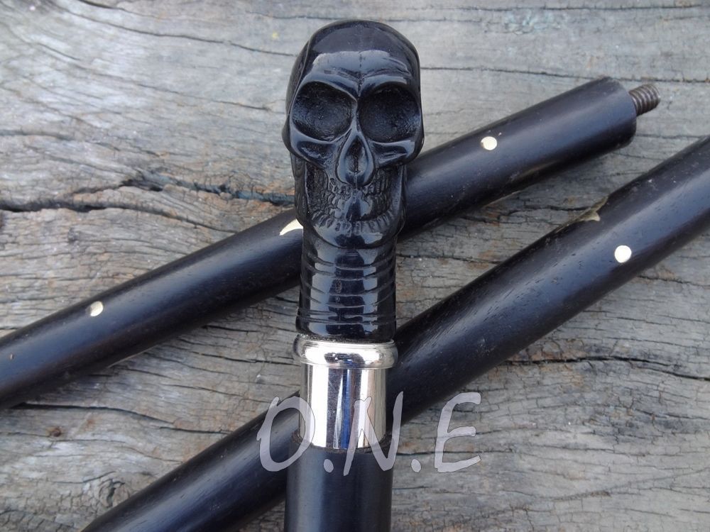 Victorian Exquisite Skull Head Wooden Antique Walking Cane Stick Gift