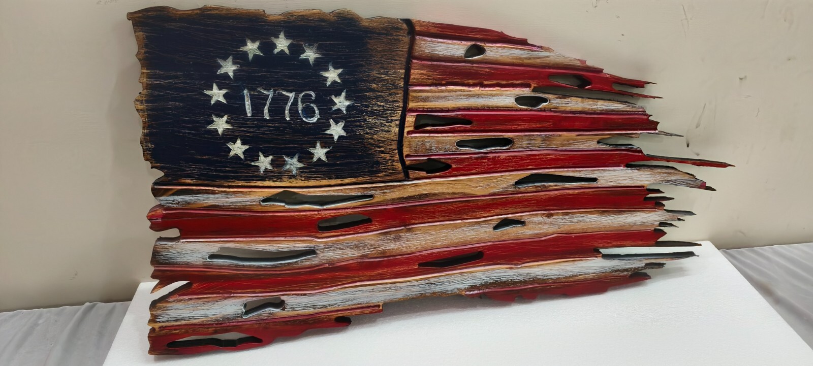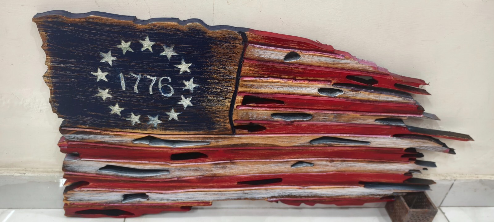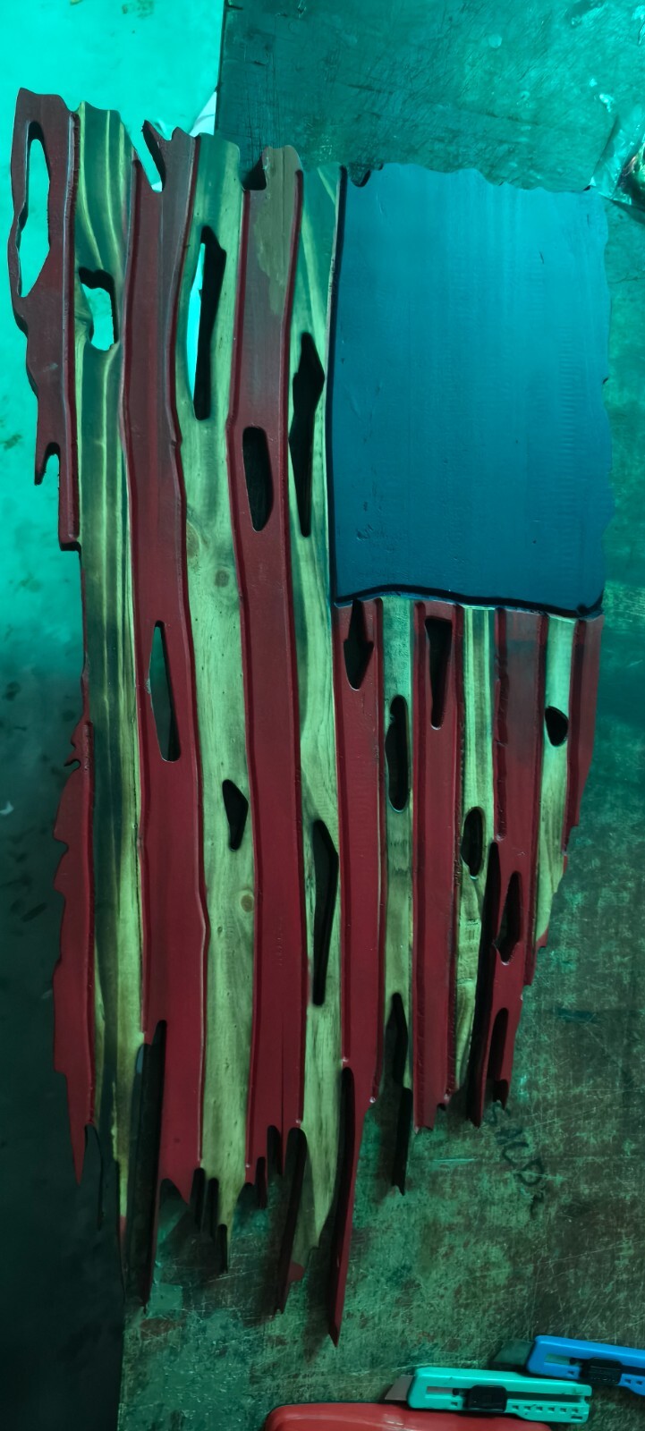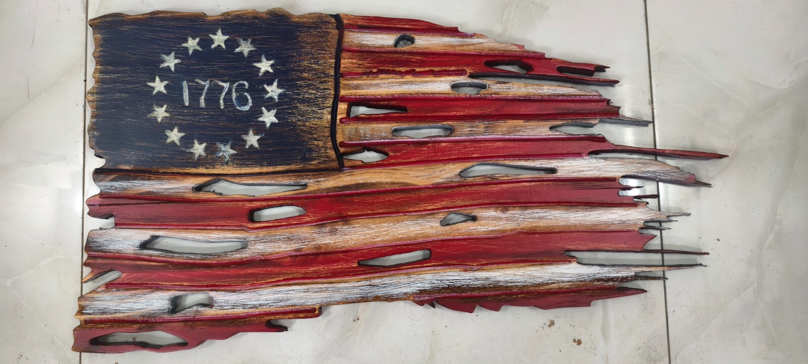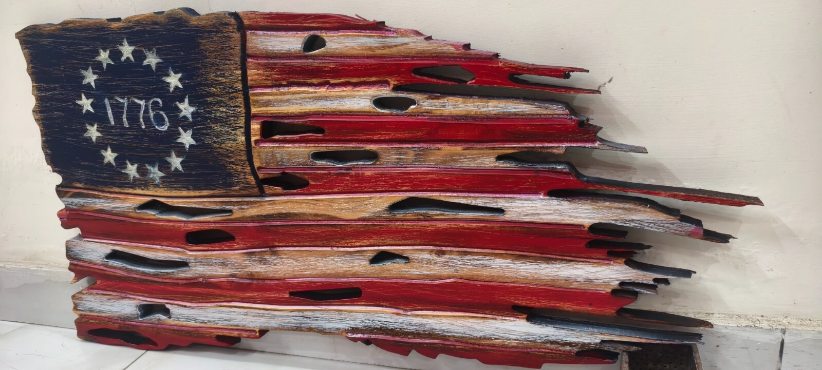New Handmade Broken Wooden American Patriotic Charred American Flag Designer
