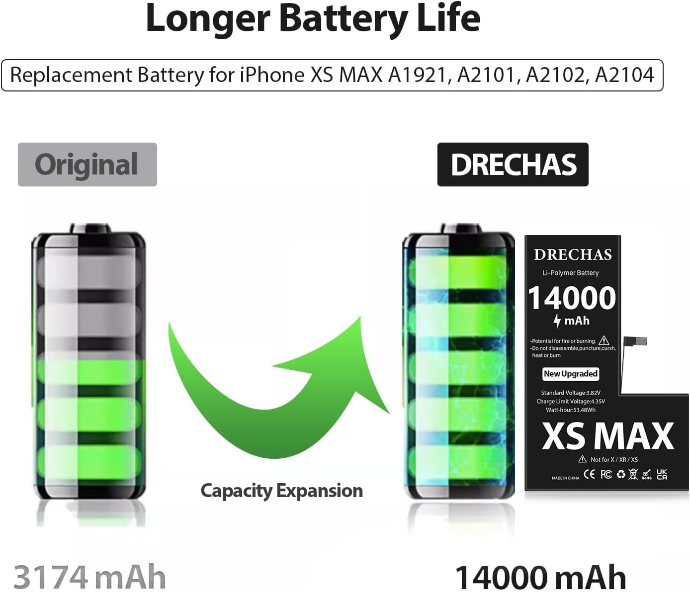 14000mAh Battery for iPhone XS MAX 2025 New Upgraded High Capacity 0 Cycle Li