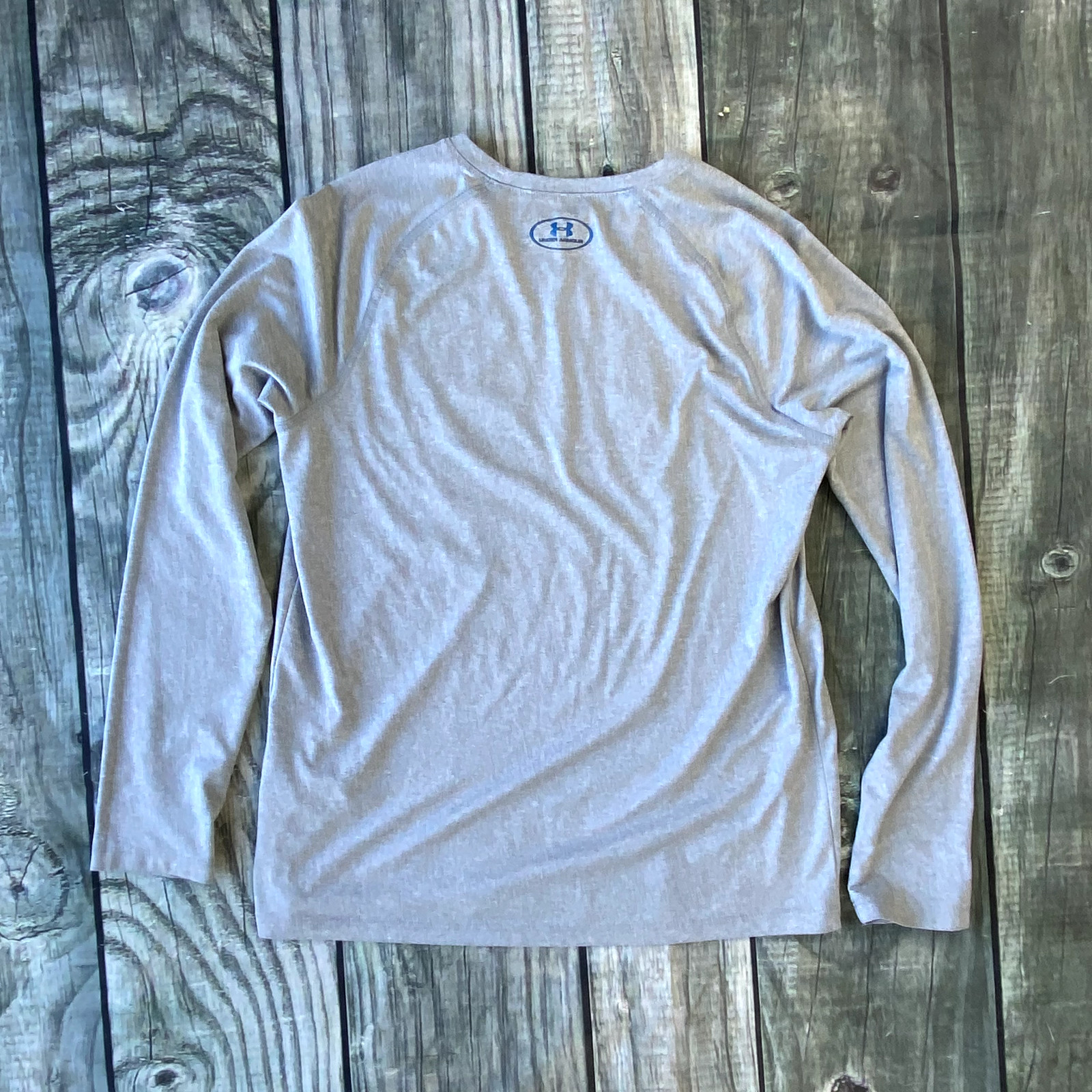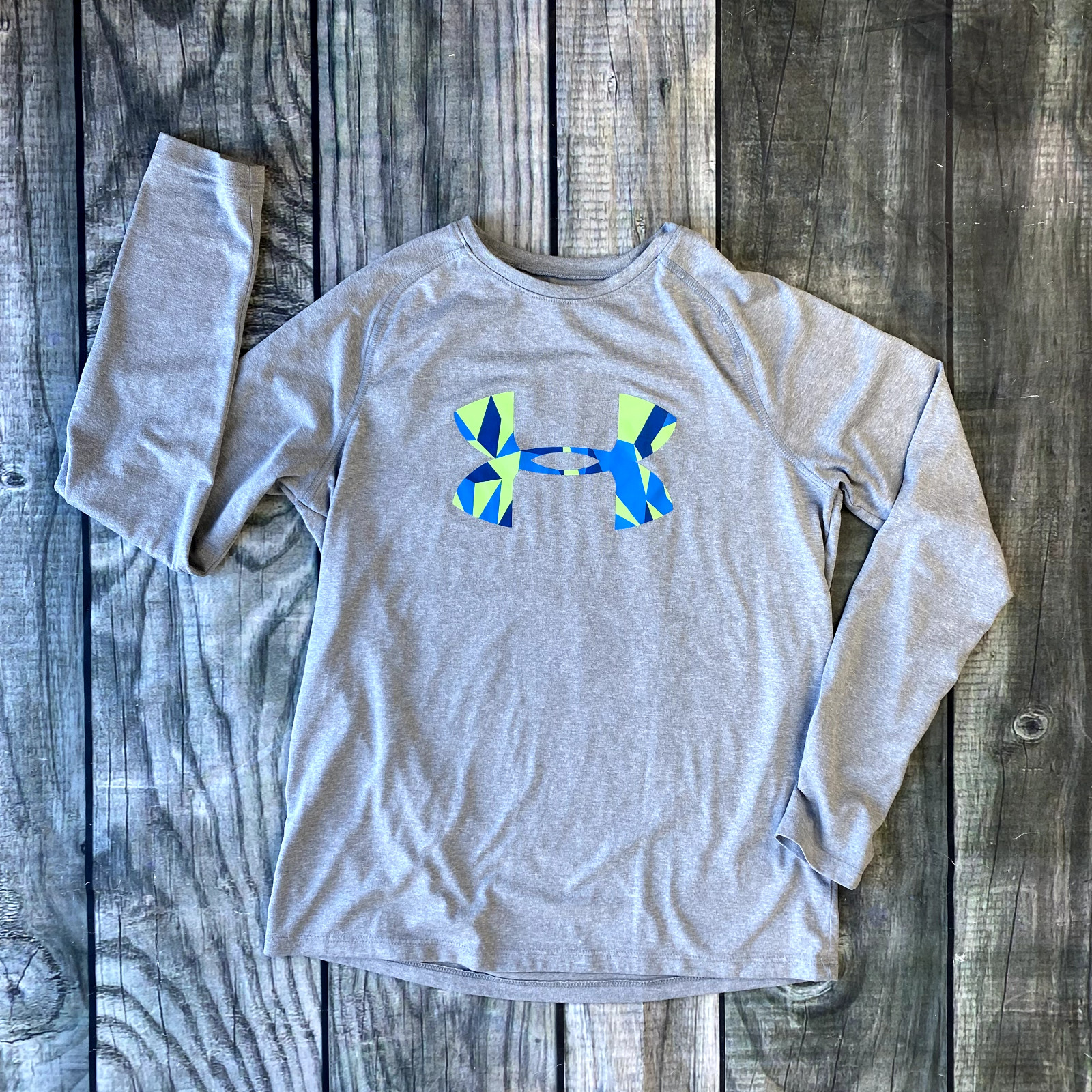 как выглядит EUC Lot 2 Under Armour Youth Large Long Sleeve Shirt Heat Gear Gray Big Logo фото