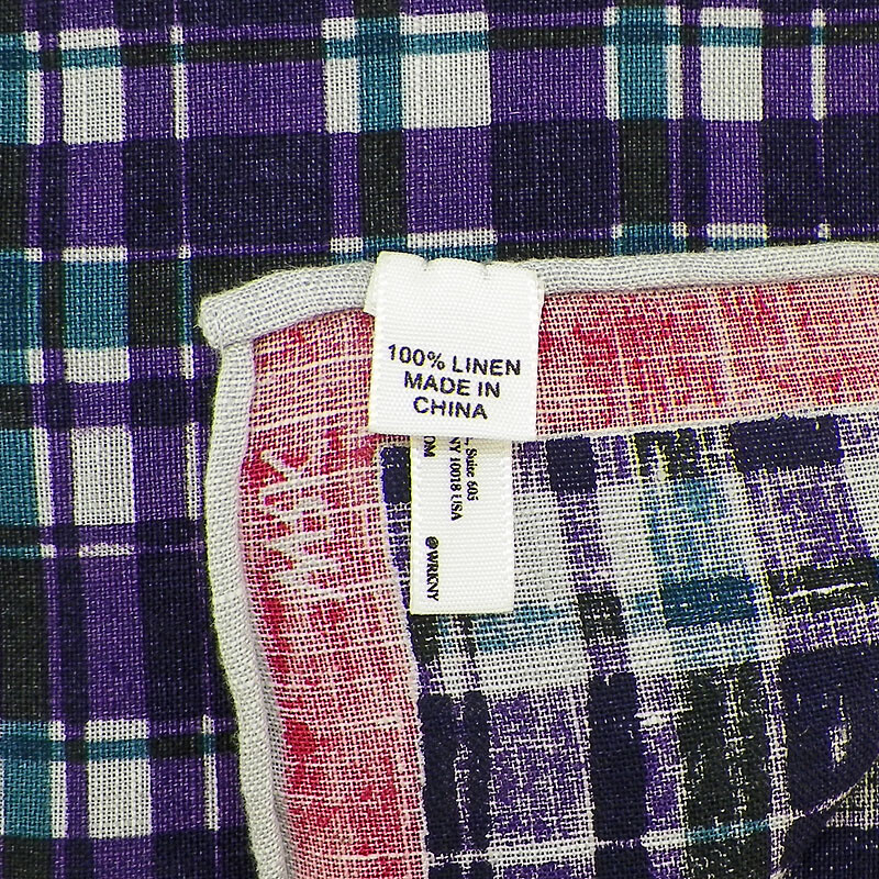 как выглядит WRK Mens Hot Pink Purple Teal Pale Gray PLAID Linen Pocket Square NWT фото