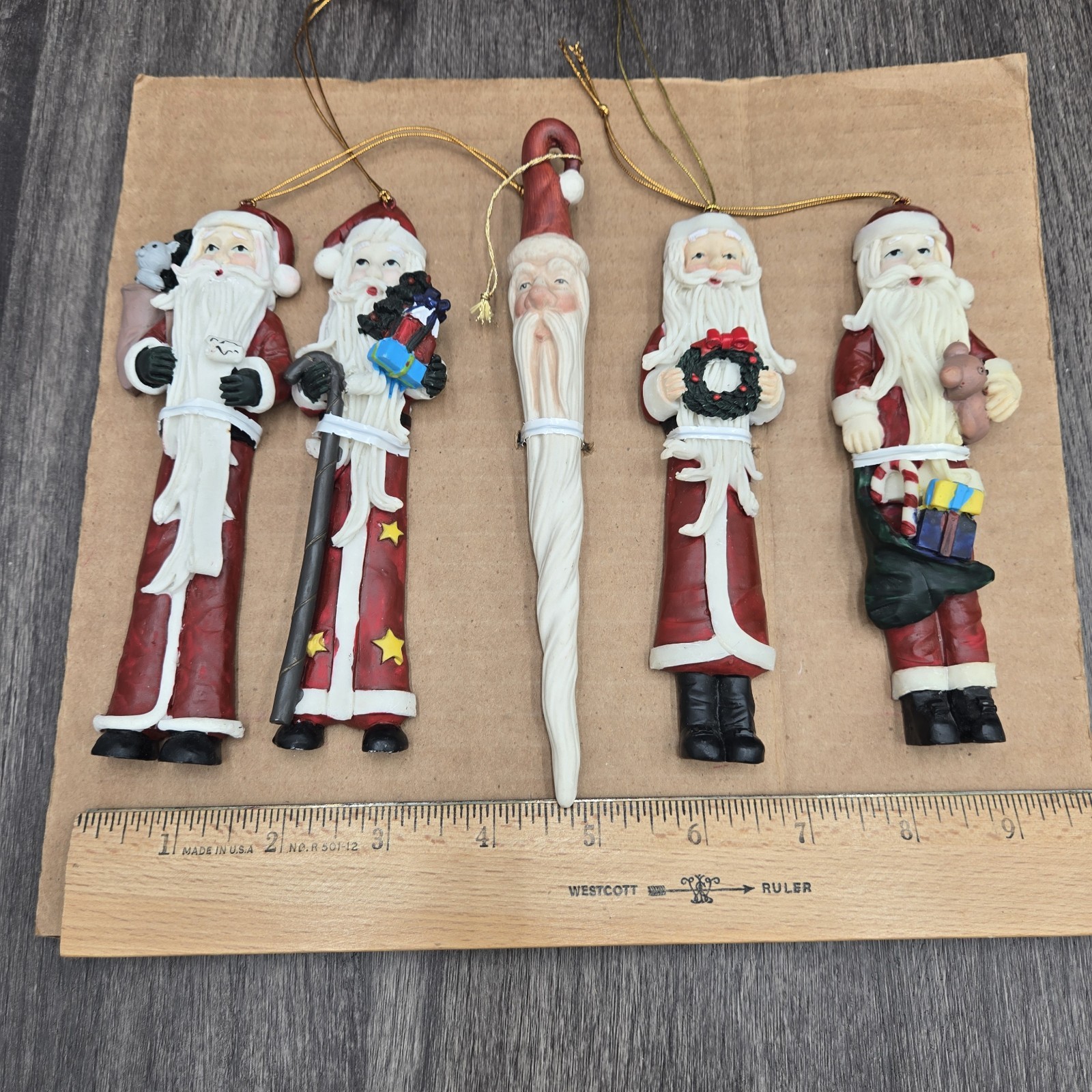 как выглядит Set of 5 Resin Santa Claus Ornaments 6" Tall Skinny Figurines Christmas Holiday фото