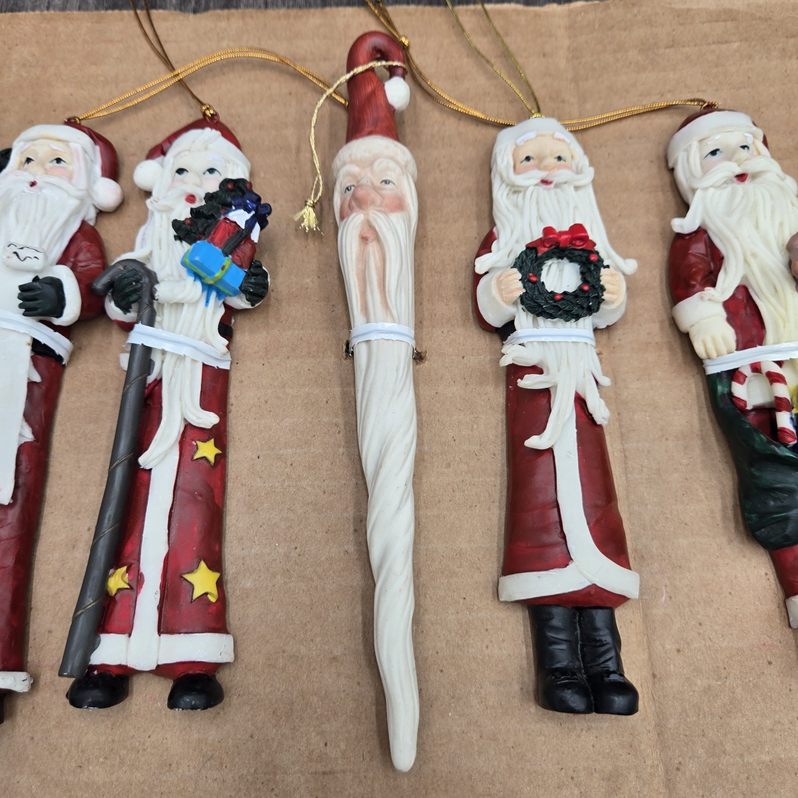 Set of 5 Resin Santa Claus Ornaments 6 Tall Skinny Figurines Christmas Holiday
