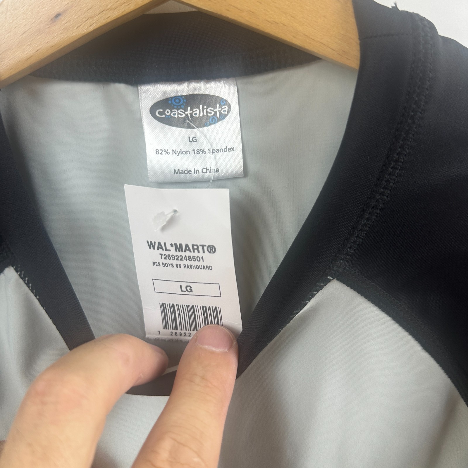 Coastalista Wisconsin Rashguard Swim Top Boys Large Black Gray Gecko Graphic