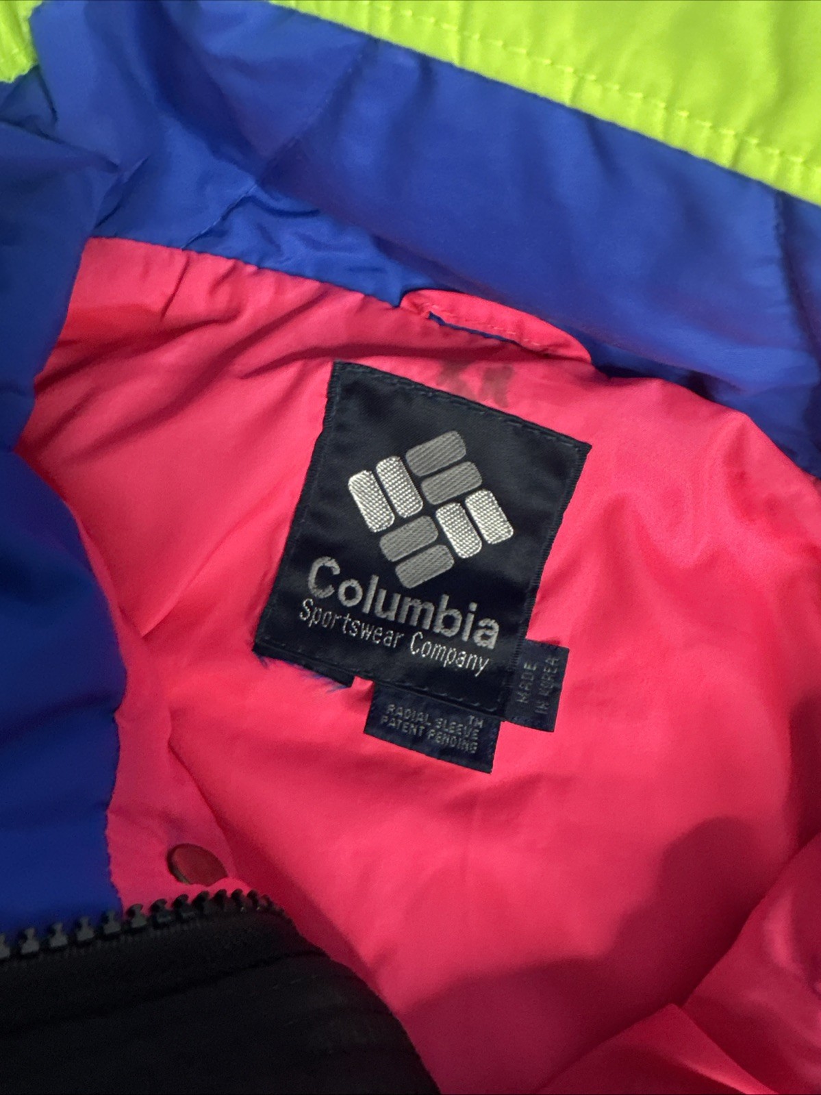 Columbia Sportswear Vintage Windbreaker Jacket Black Neon Green Pink Apx L