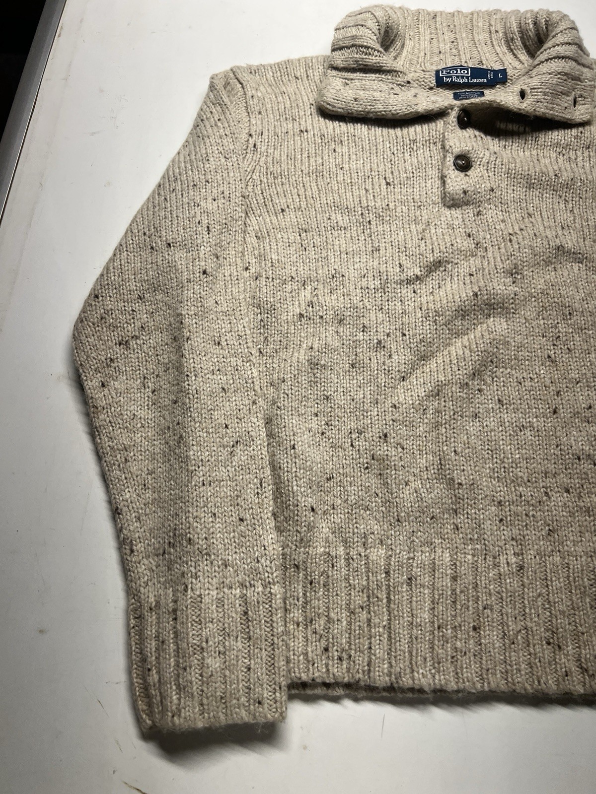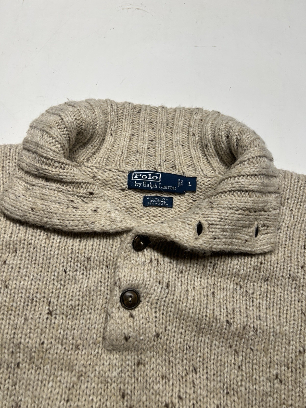 Vintage Polo Ralph Lauren Shawl Chunky Knit Wool Alpaca Blend Sweater Size L