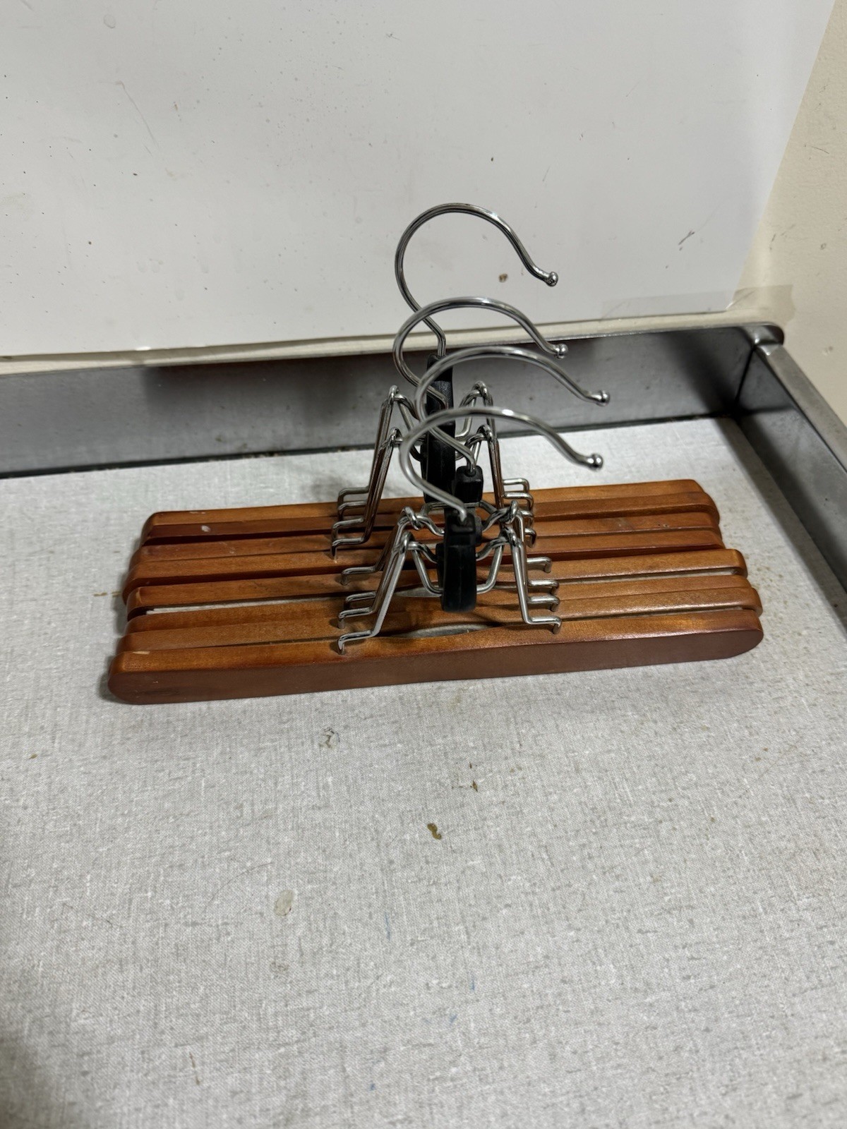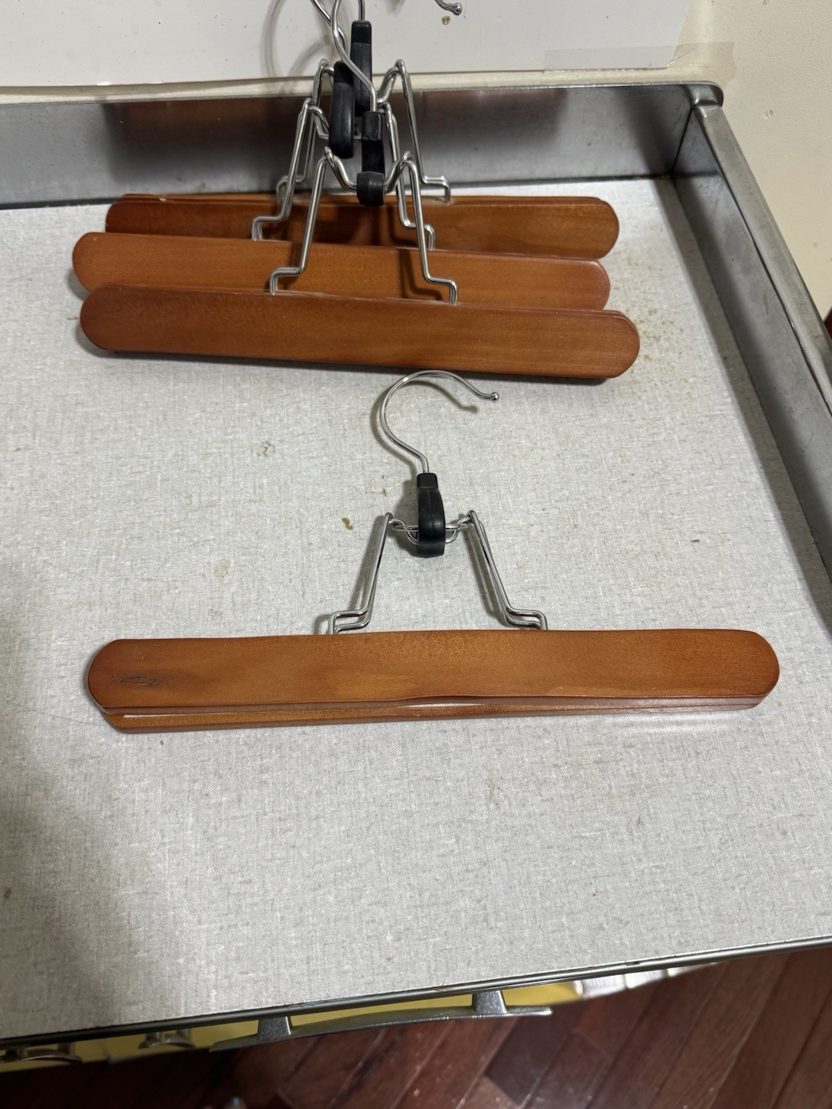 как выглядит Vintage Wooden Pant/Skirt Hangers Set Of 4 Clamp Non Slip Felt Lining фото