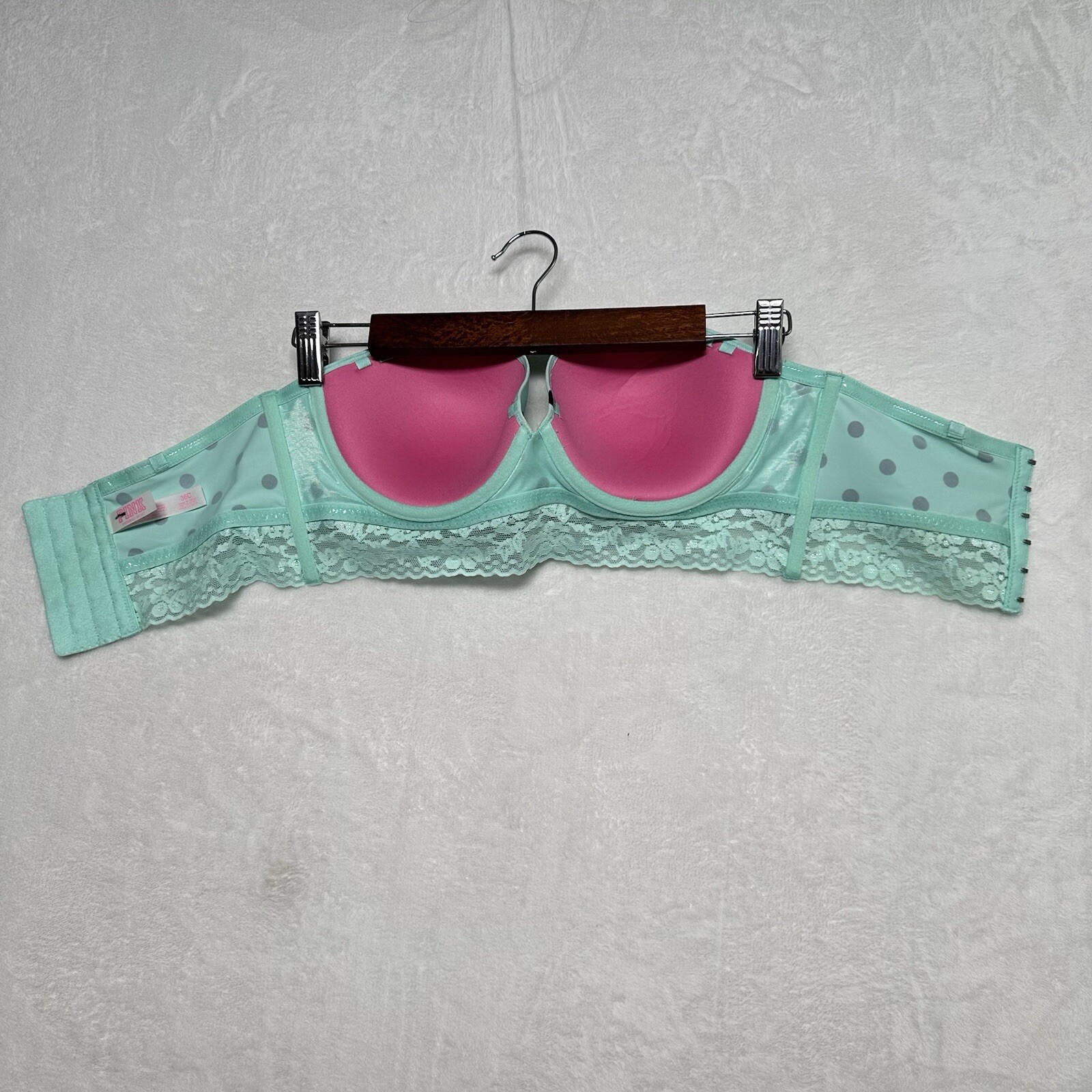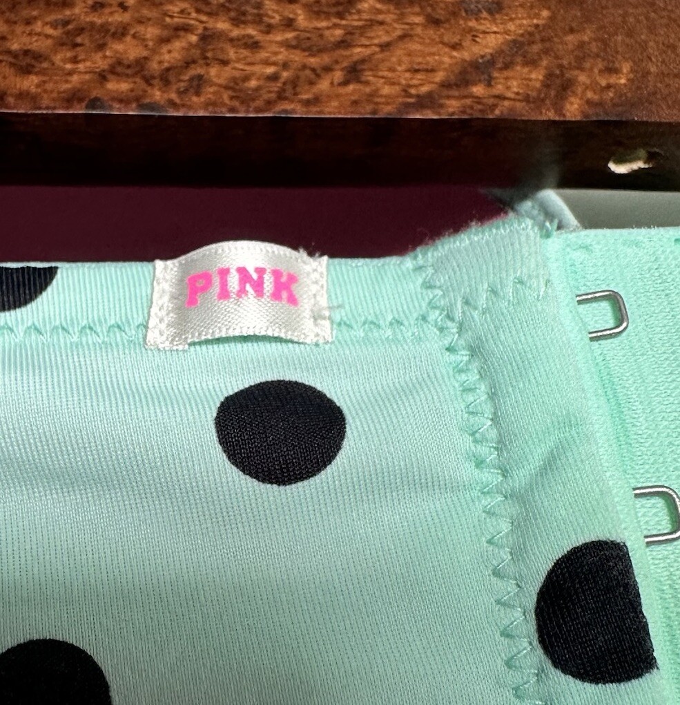 Victorias Secret PINK 36C Bustier Polka Dot Lace Underwire Back Close Strapless