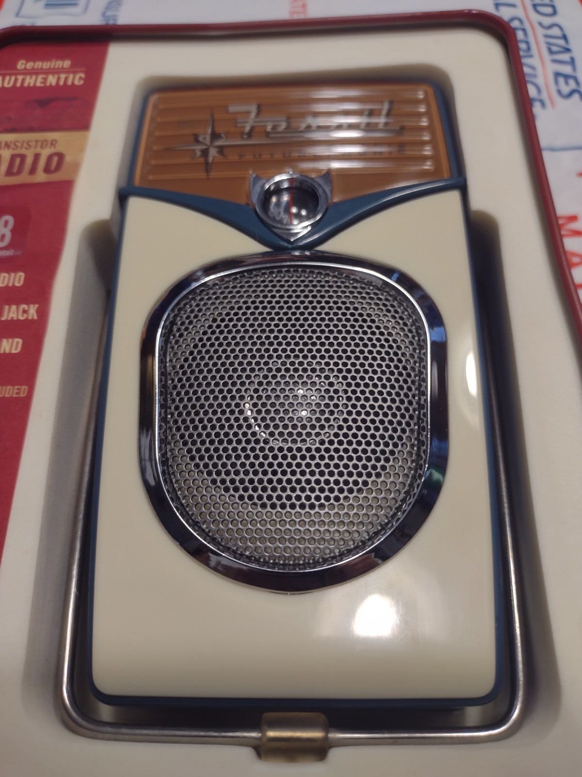 как выглядит Fossil Authentic AM/FM Transistor Radio With Tin Handle / Stand 2003 Earphone фото