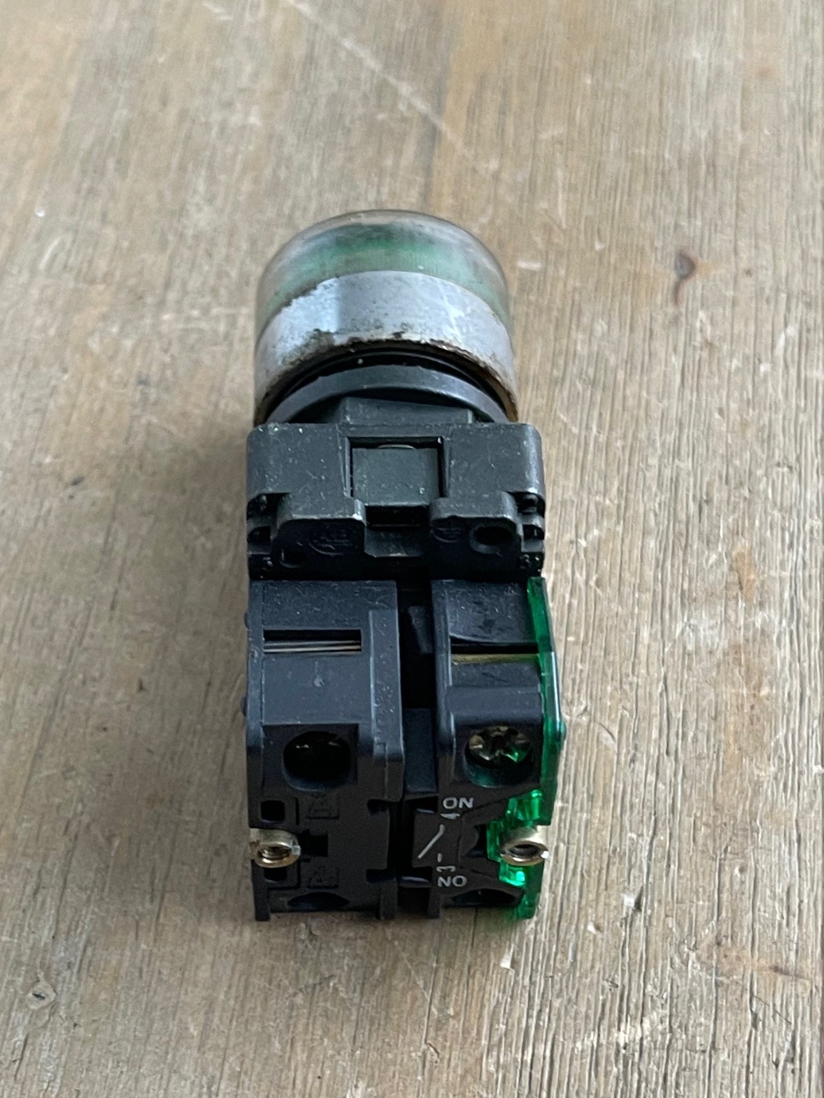 ALLEN BRADLEY GREEN ILLUMINATED PUSH BUTTON WITH 800E-2X10 SER A CONTACT BLOCK