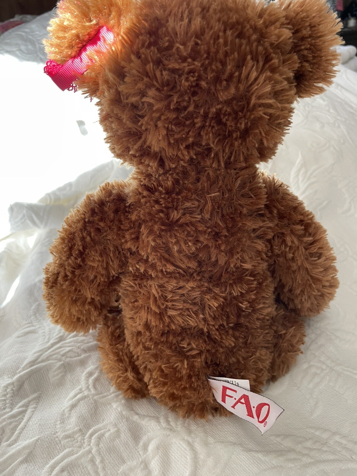 FAO Schwarz Teddy Bear Pink Bow Stuffed Plush Toys R Us 2012 18 Brown Vtg