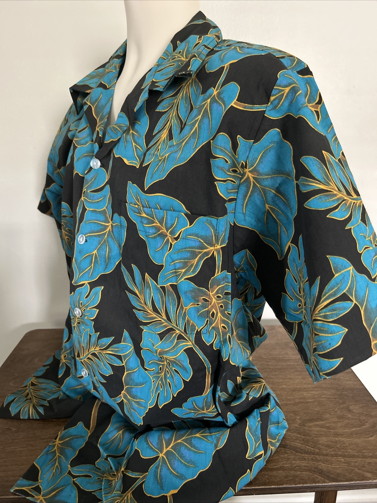 как выглядит NOS Vintage Mens Hoku Hawaii Blue Floral Hawaiian Shirt Made In Hawaii Size L фото