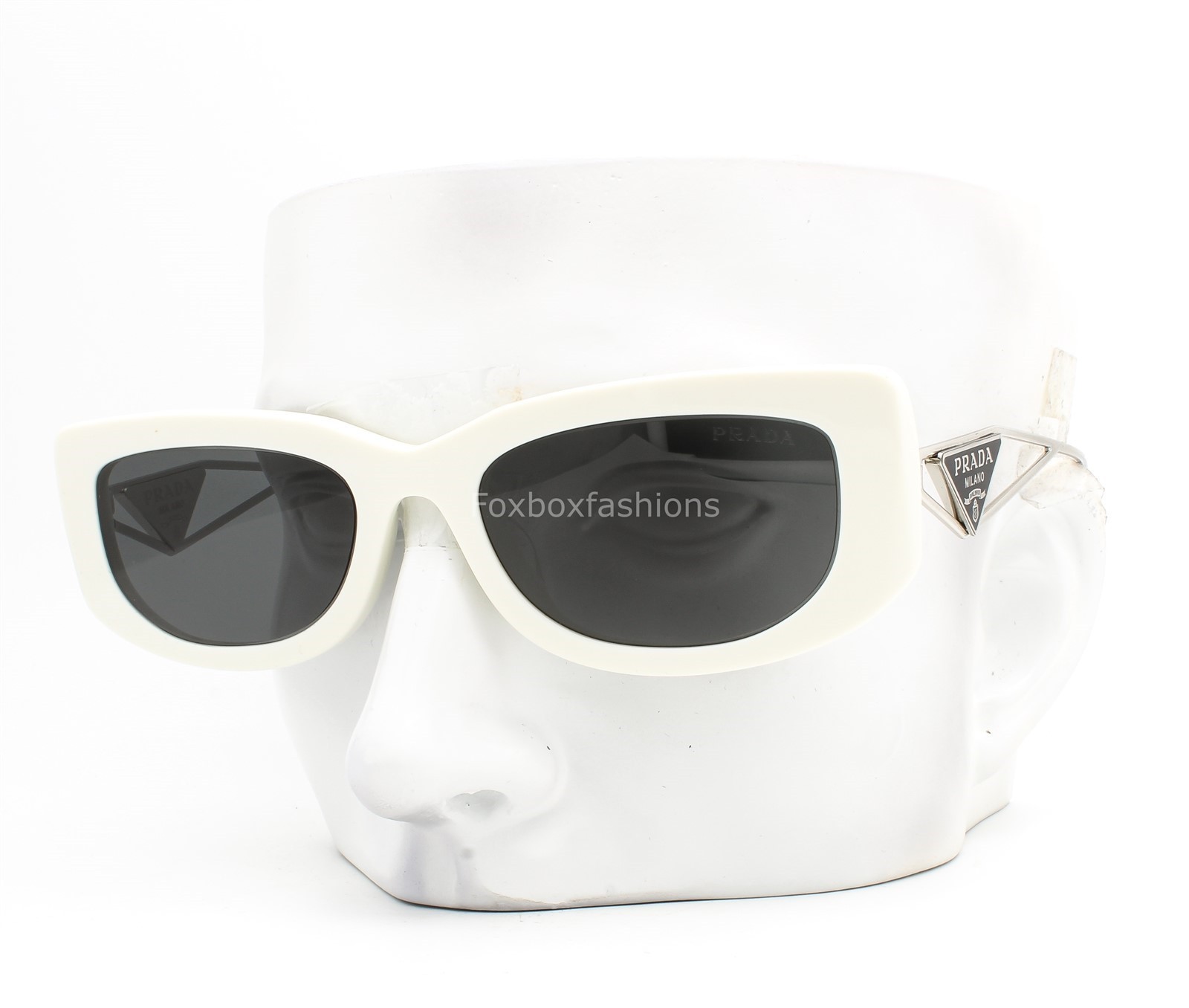 как выглядит Prada Sunglasses SPR 14Y 142-5S0 Talc White Silver Dark Gray Tinted w/case фото