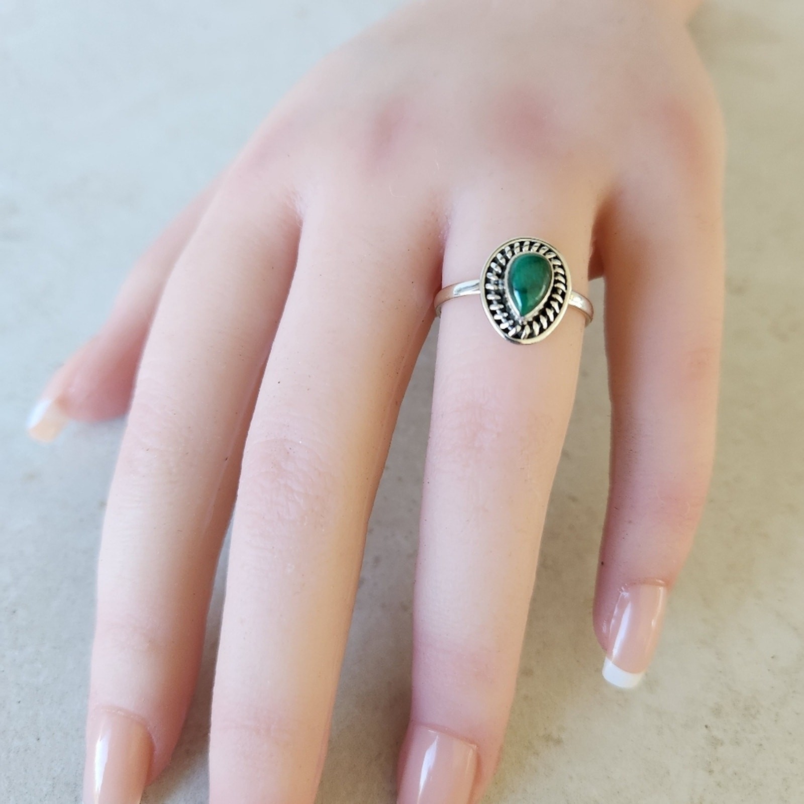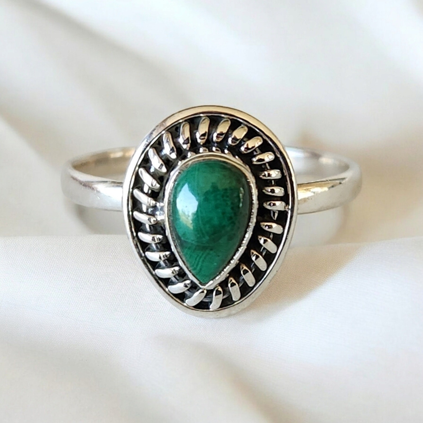 как выглядит NEW Malachite 925 Sterling Silver Bezel Set Teardrop Ring Size 8.25 8 1/4 фото