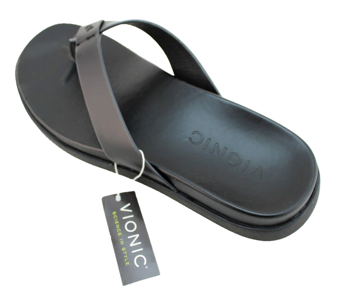 New VIONIC Elijah Toe Post Size 8 Black Leather Orthotic Men's Flip Flop Sandals