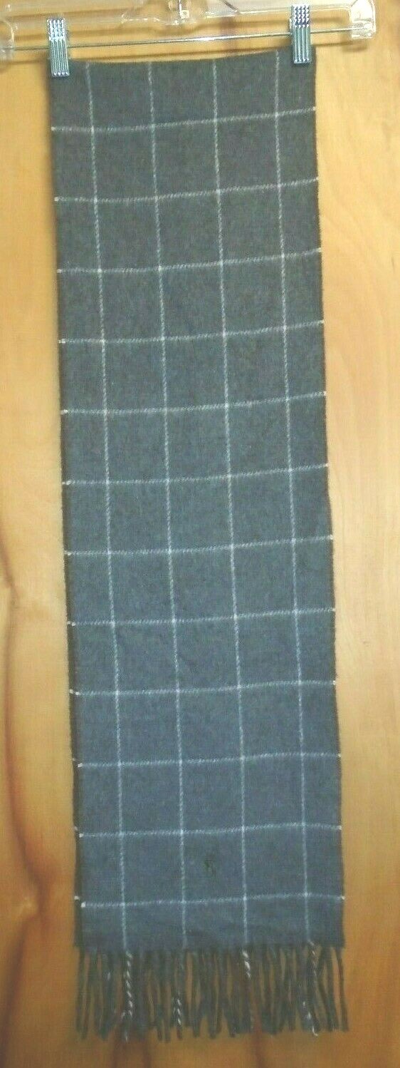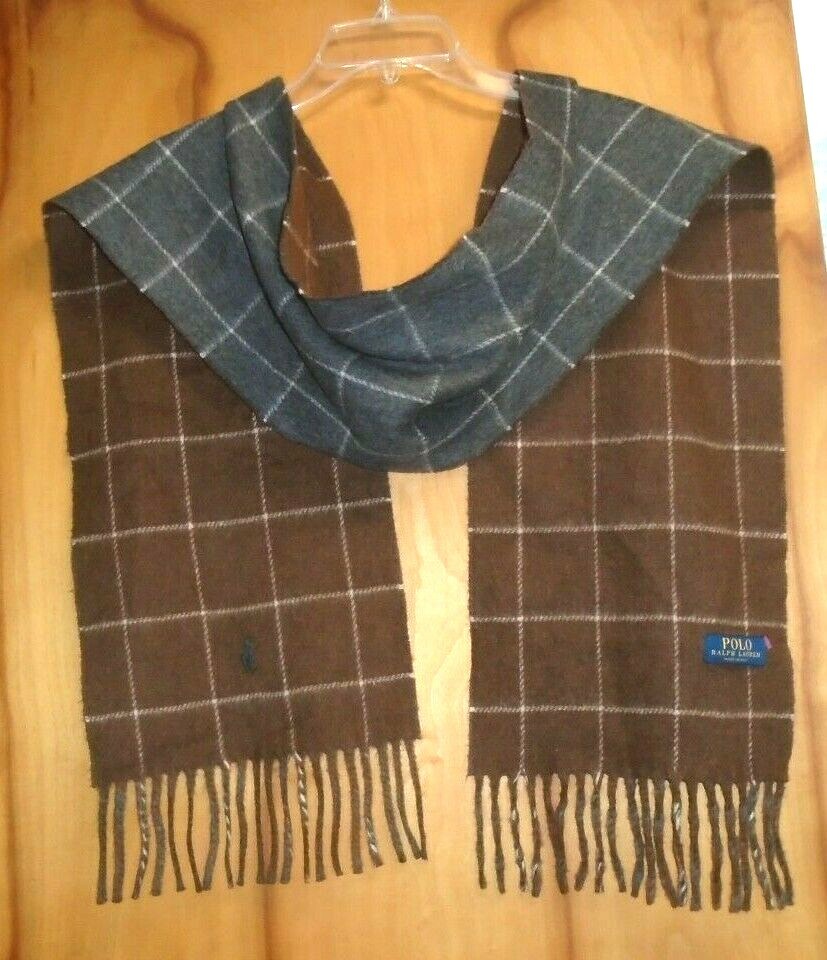 Polo Ralph Lauren Pure Cashmere Brown Grey Double Plaid Scarf Made Italy NWT