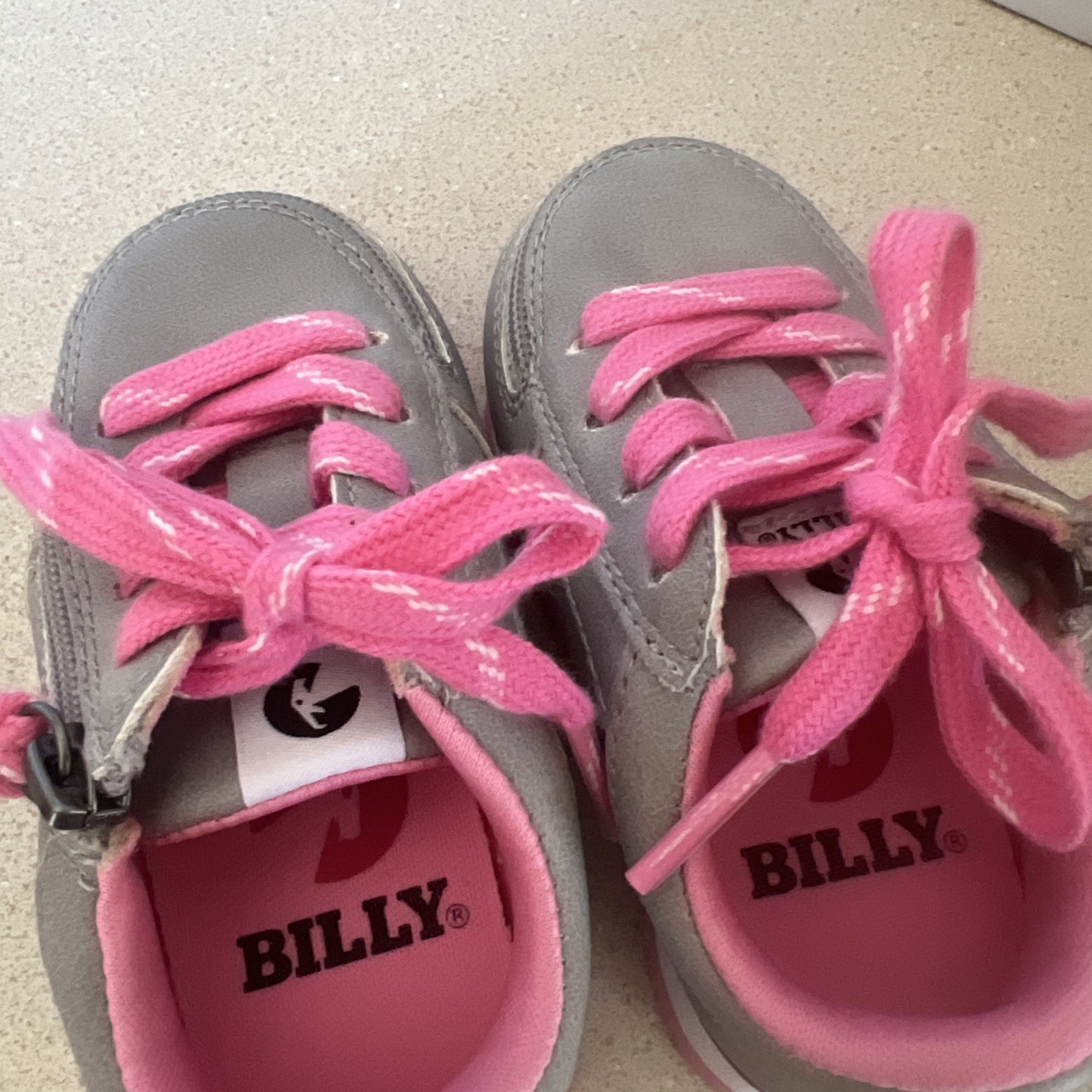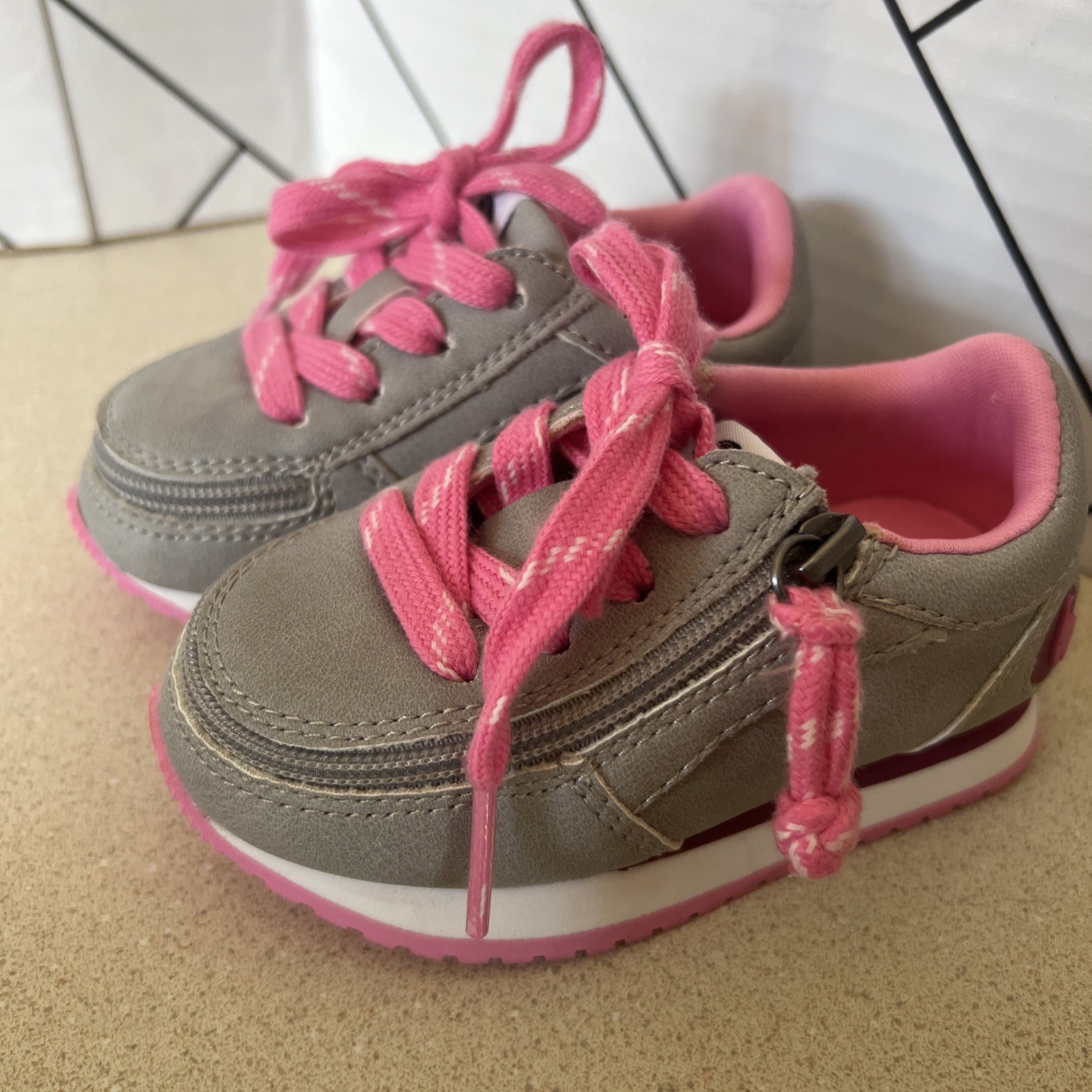 как выглядит Billy Toddler Shoes Size 5 M Jogger Gray Pink Tennis Shoe Top Zipper Accessible фото
