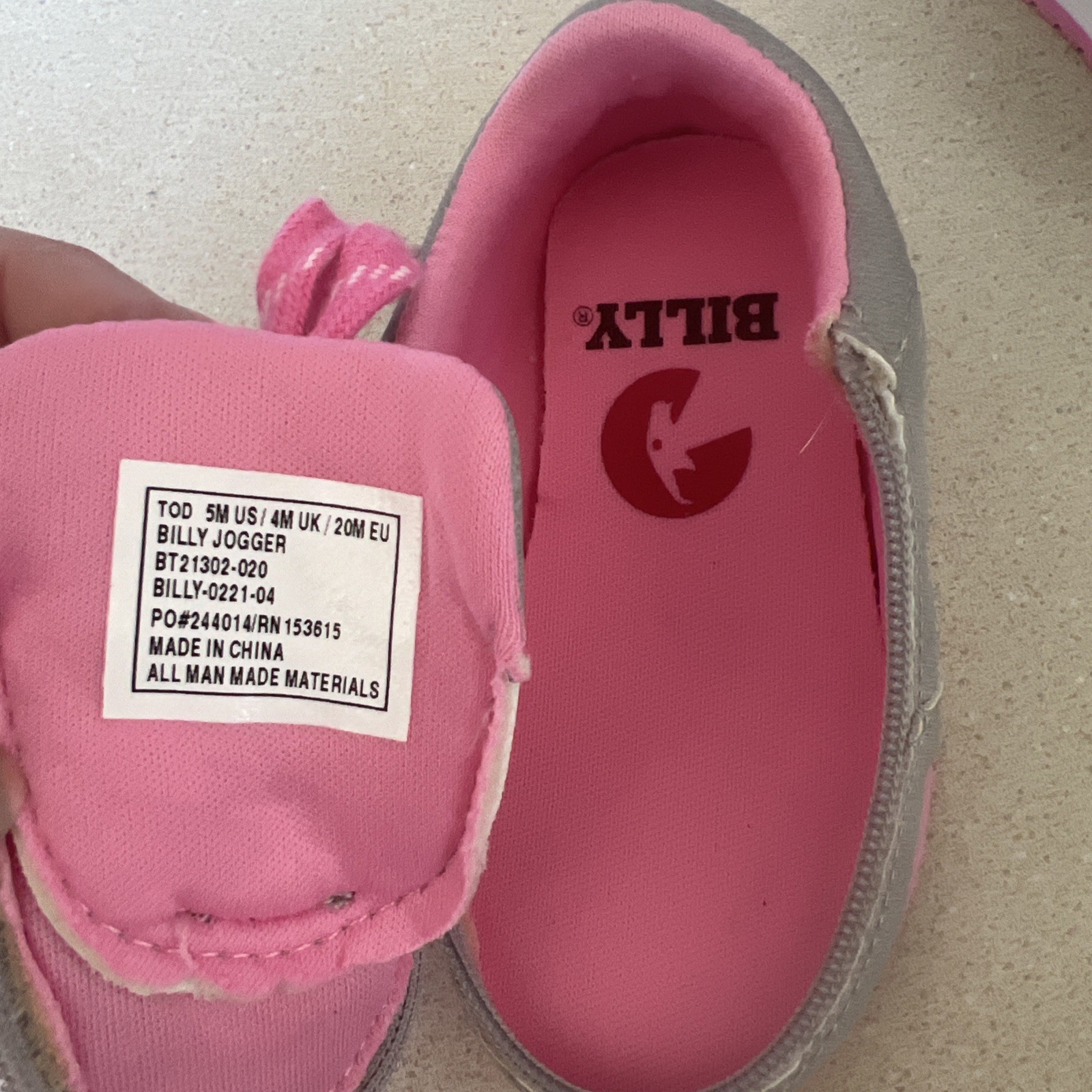 Billy Toddler Shoes Size 5 M Jogger Gray Pink Tennis Shoe Top Zipper Accessible
