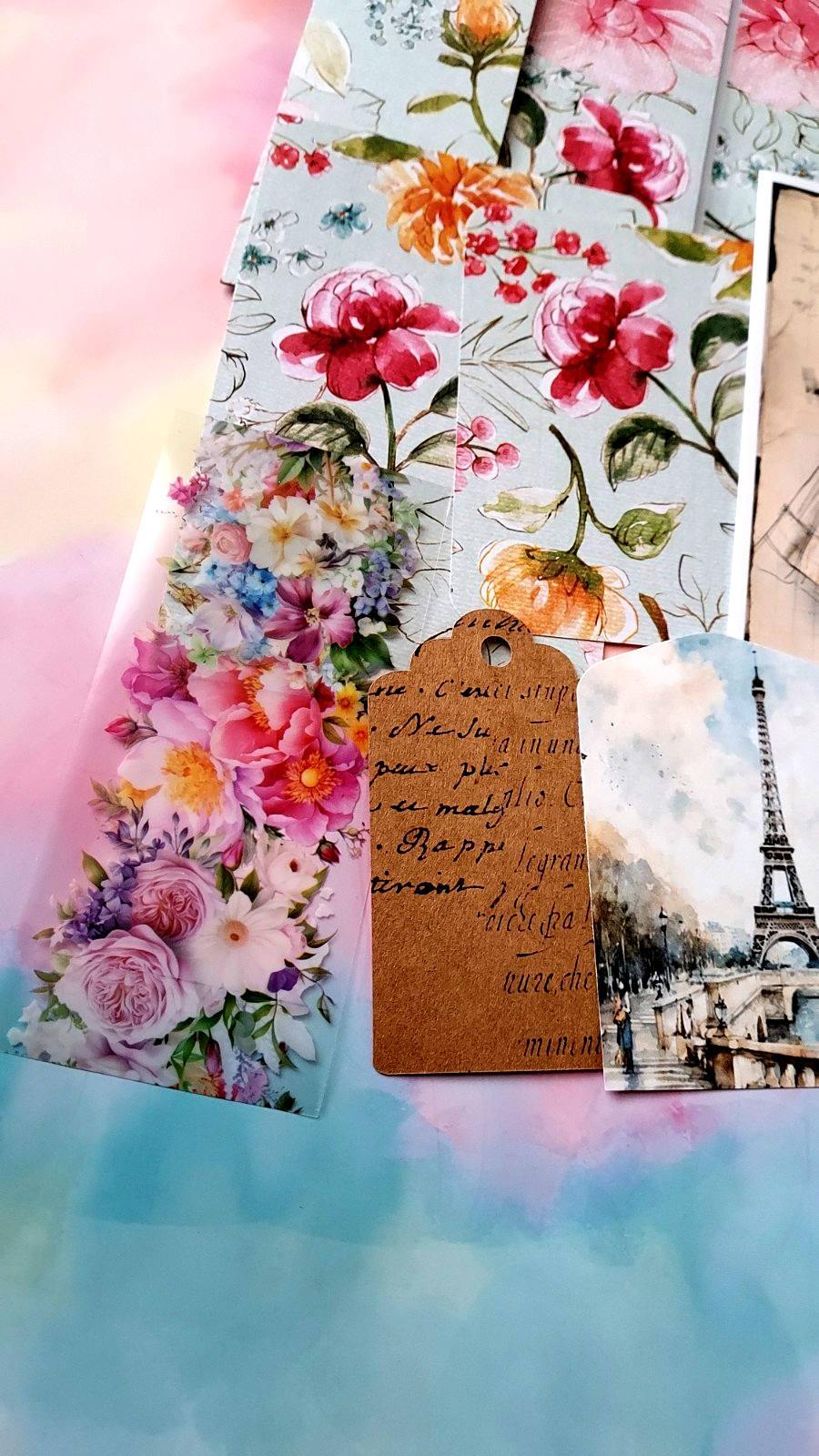 Junk Journal Folio, Vintage Floral, 12 Embellishments, Vintage Pockets, Ephemera