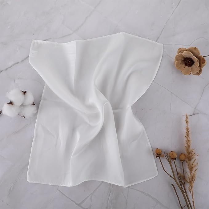Mens White Silk Pocket Square - 100 Pure Silk Handkerchief 13.8 x 13.8