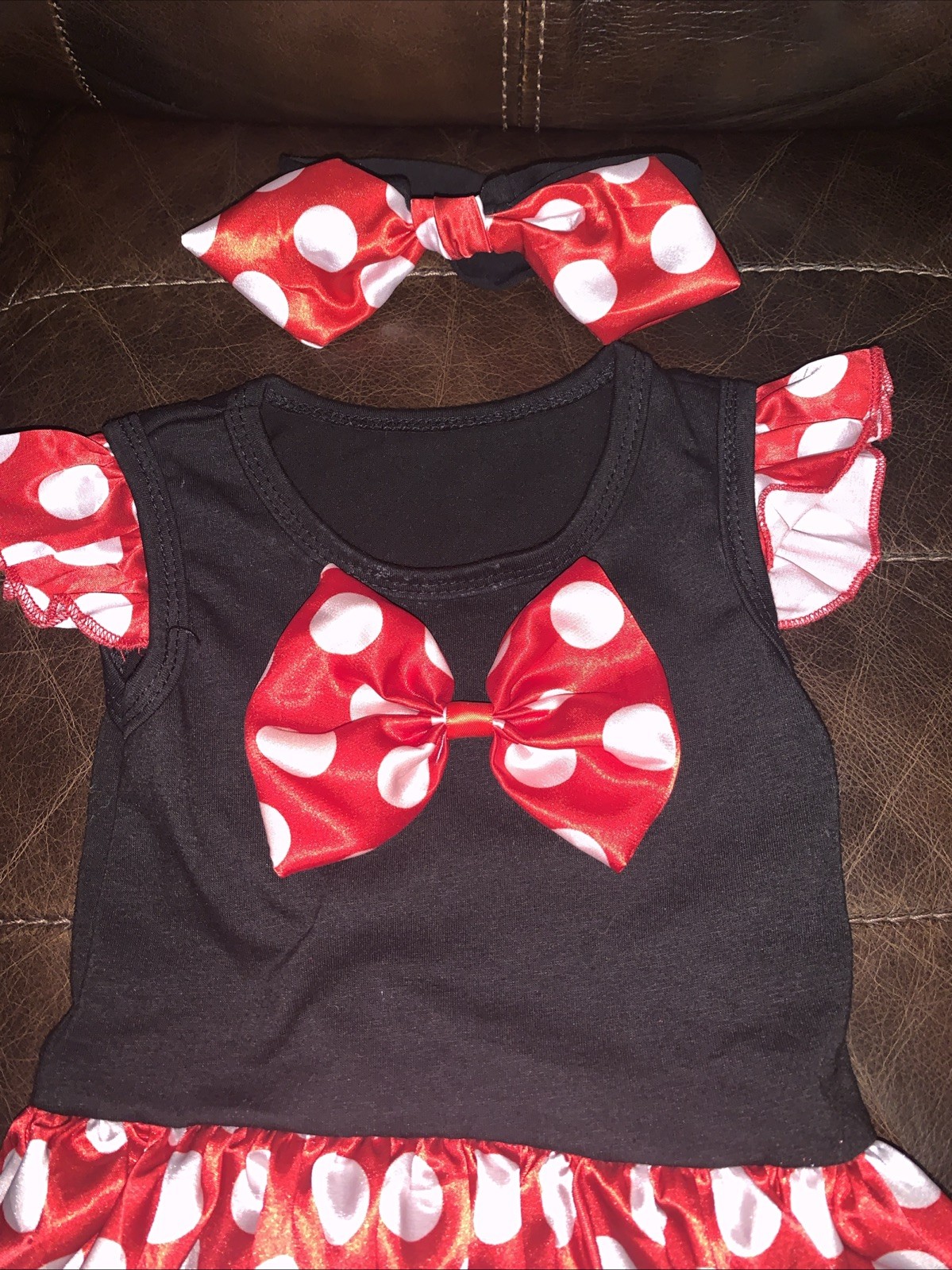 как выглядит Minnie Mouse Polka Dot Dress Costume Sz S Months Headband 6-9 mo Halloween фото