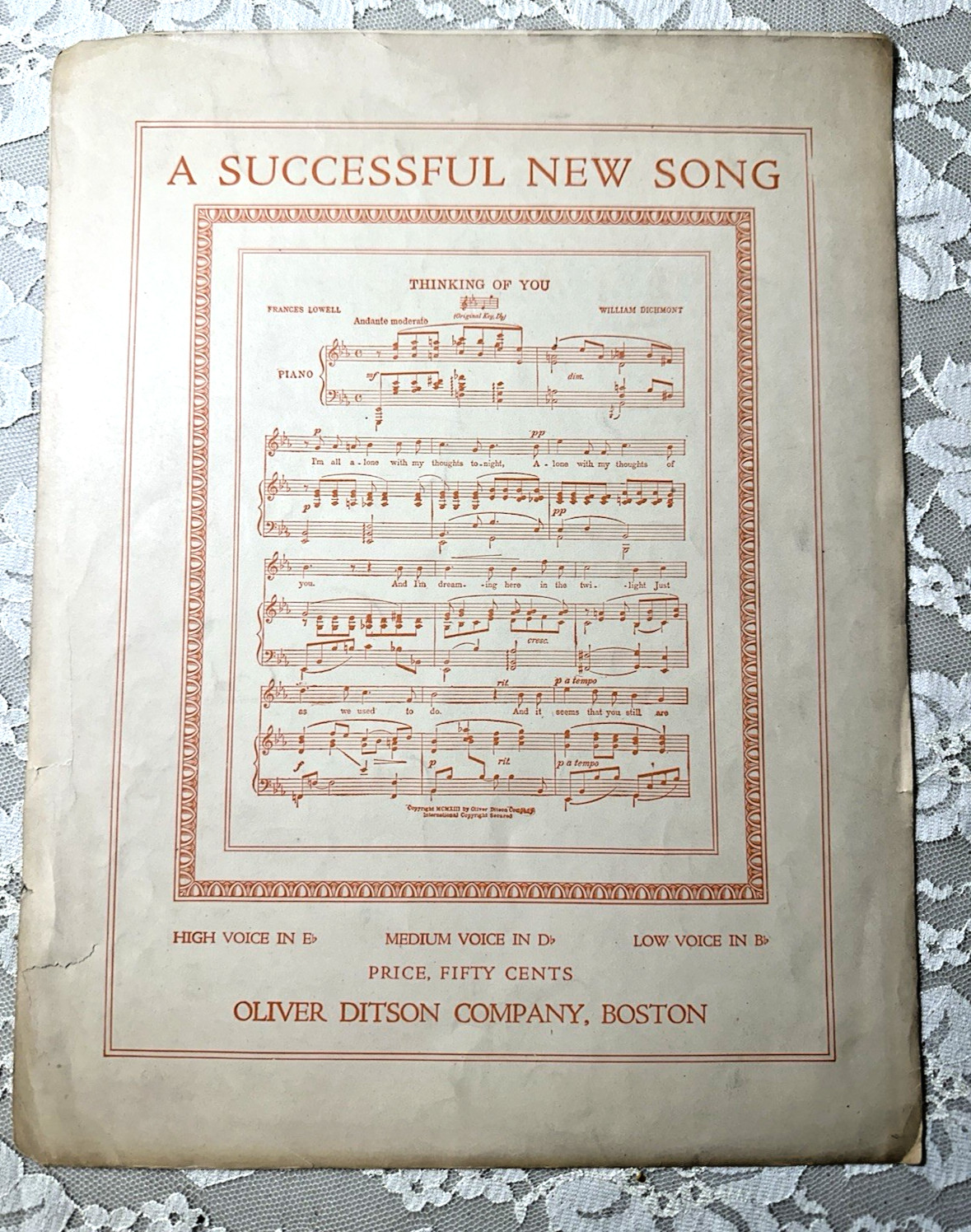 VTH Sheet Music SONGS BY WILLIAM DICHMONT 1922