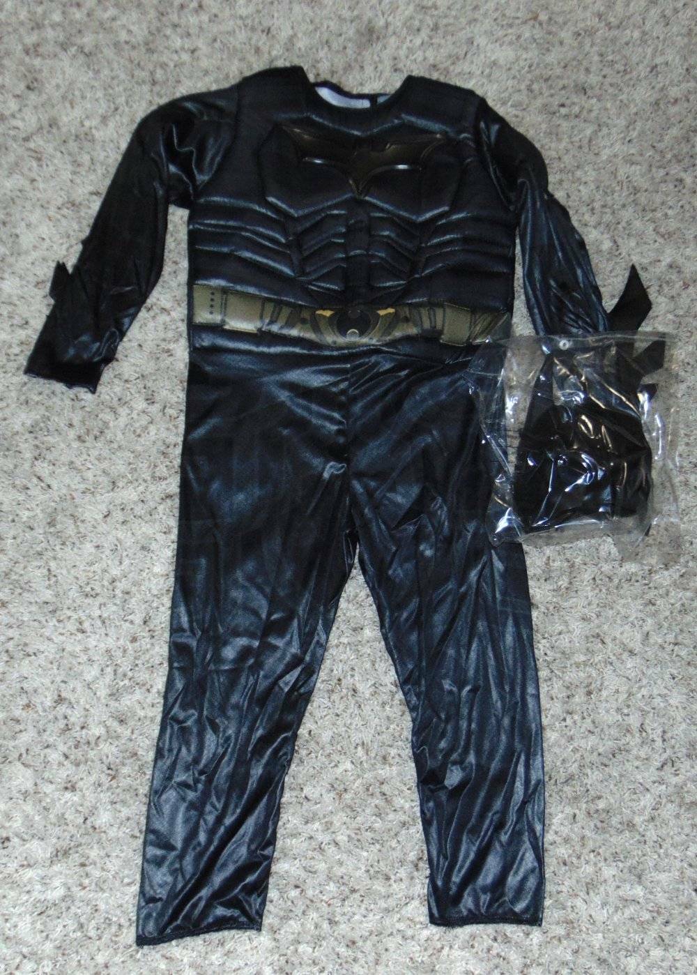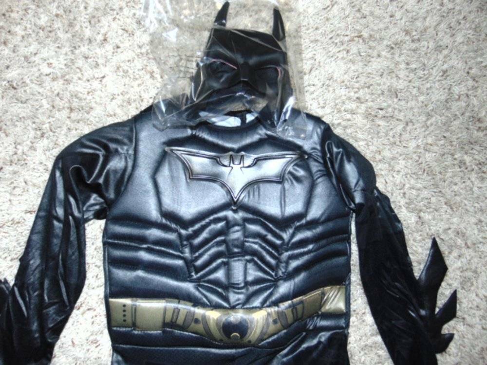как выглядит Batman Halloween Costume 4/6 Dark Knight Muscle Jumpsuit Mask Cape 3 Pc Boys фото